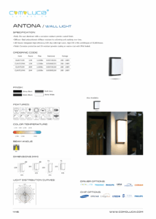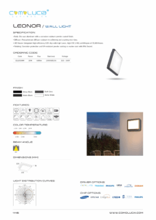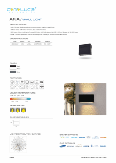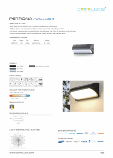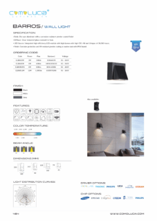 Body: Die-cast aluminum with a corrosion-resistant powder-coated finish. Diffuser: Polycarbonate lens with clear tempered glass resistant to heat. LED Source: Integrated high-efficiency LED chips with high lumen, high CRI (>90) and lifespan of 50,000 hours. Finish: Powder coated in various color.
