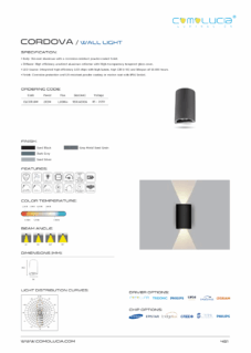 Body: Die-cast aluminum with a corrosion-resistant powder-coated finish. Diffuser: Clear tempered glass resistant to heat. LED Source: Integrated high-efficiency LED chips with high lumen, high CRI (>90) and lifespan of 50,000 hours. Finish: Corrosion protection and UV-resistant powder coating or marine coat with IP66 Sealed.