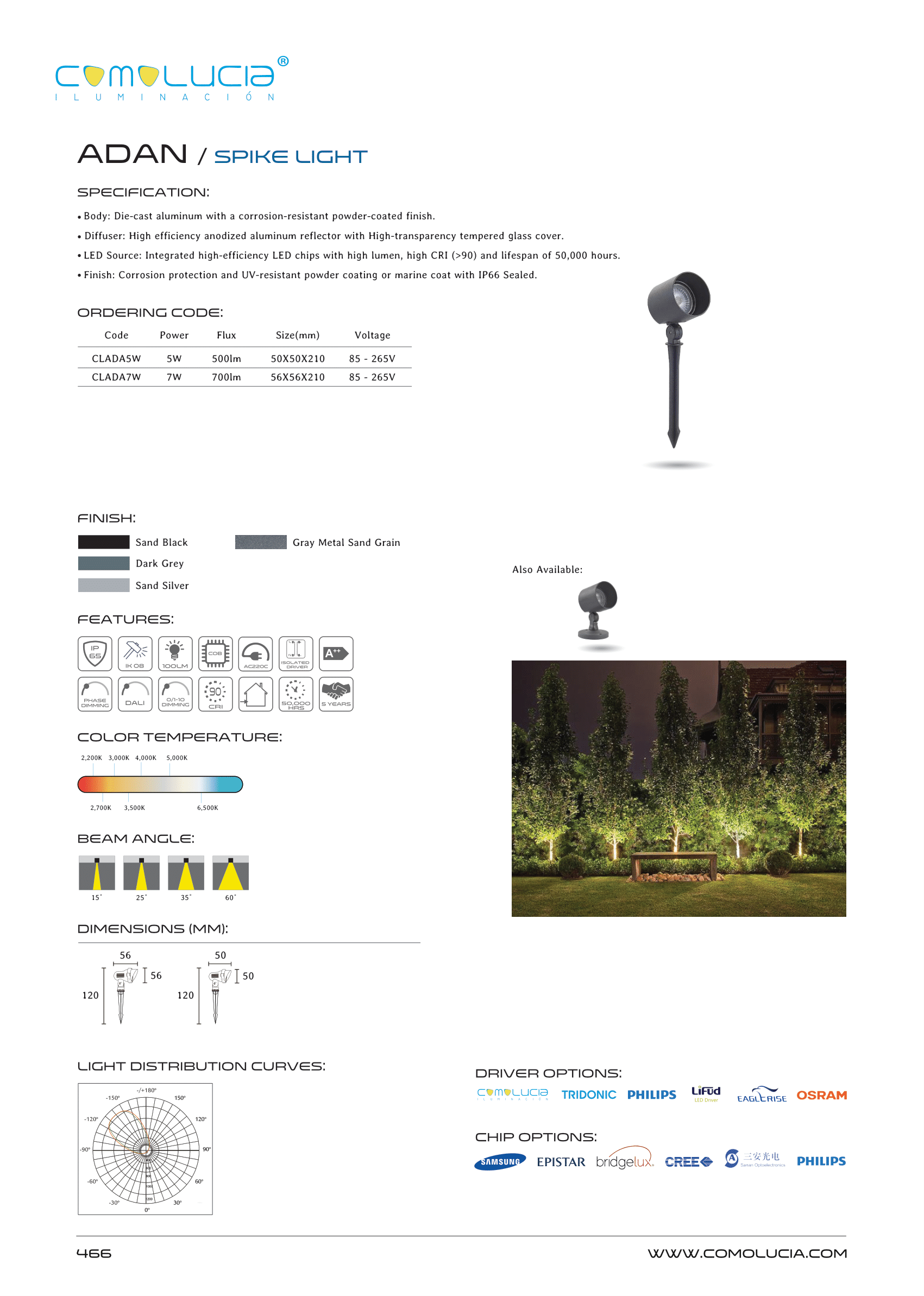 - Diffuser: High efficiency anodized aluminum reflector with High-transparency tempered glass cover.