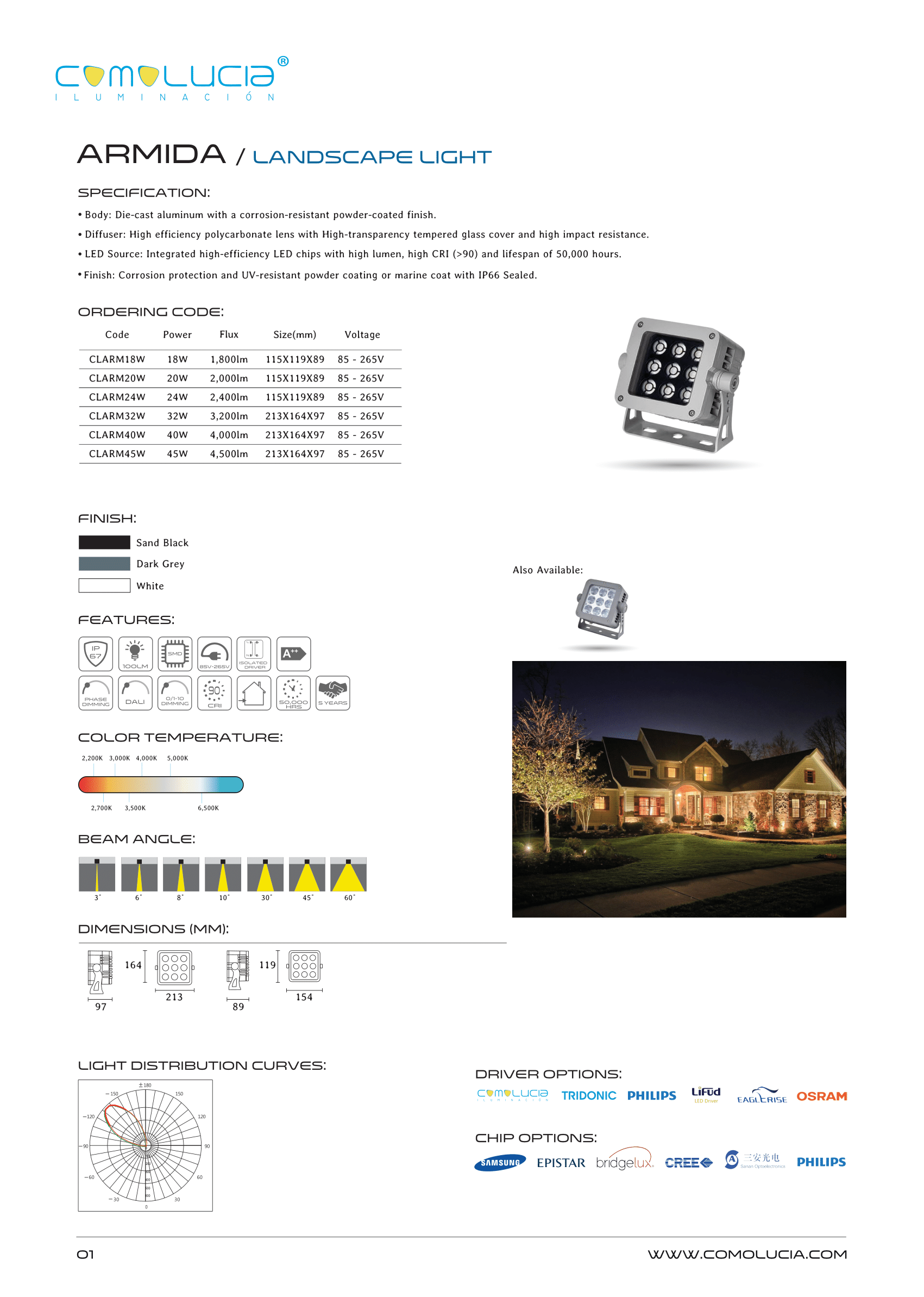 - Finish: Corrosion protection and UV-resistant powder coating or marine coat with IP66 Sealed.