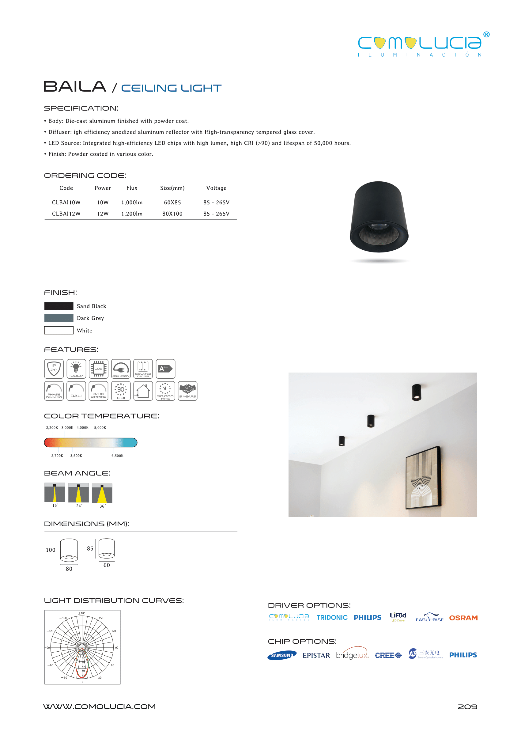 - LED Source: Integrated high-efficiency LED chips with high lumen, high CRI (>90) and lifespan of 50,000 hours.