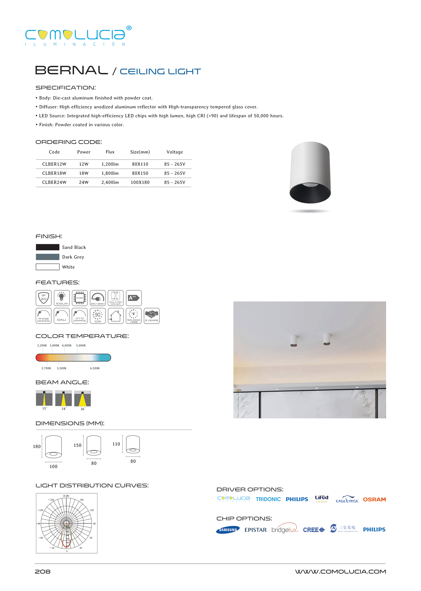 - LED Source: Integrated high-efficiency LED chips with high lumen, high CRI (>90) and lifespan of 50,000 hours.