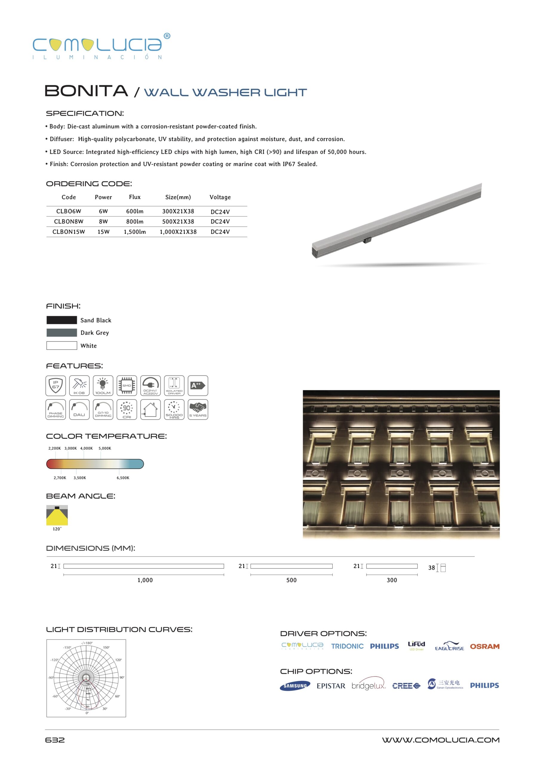 - LED Source: Integrated high-efficiency LED chips with high lumen, high CRI (>90) and lifespan of 50,000 hours.