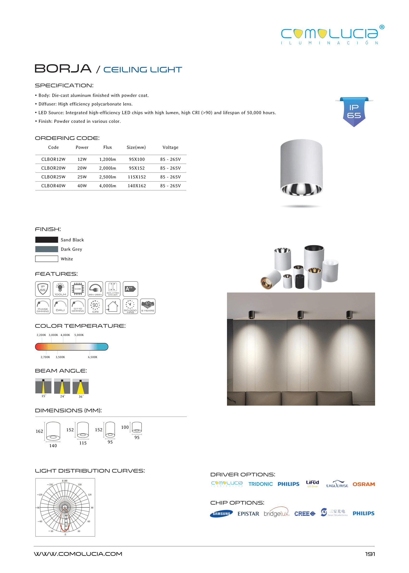 - LED Source: Integrated high-efficiency LED chips with high lumen, high CRI (>90) and lifespan of 50,000 hours.