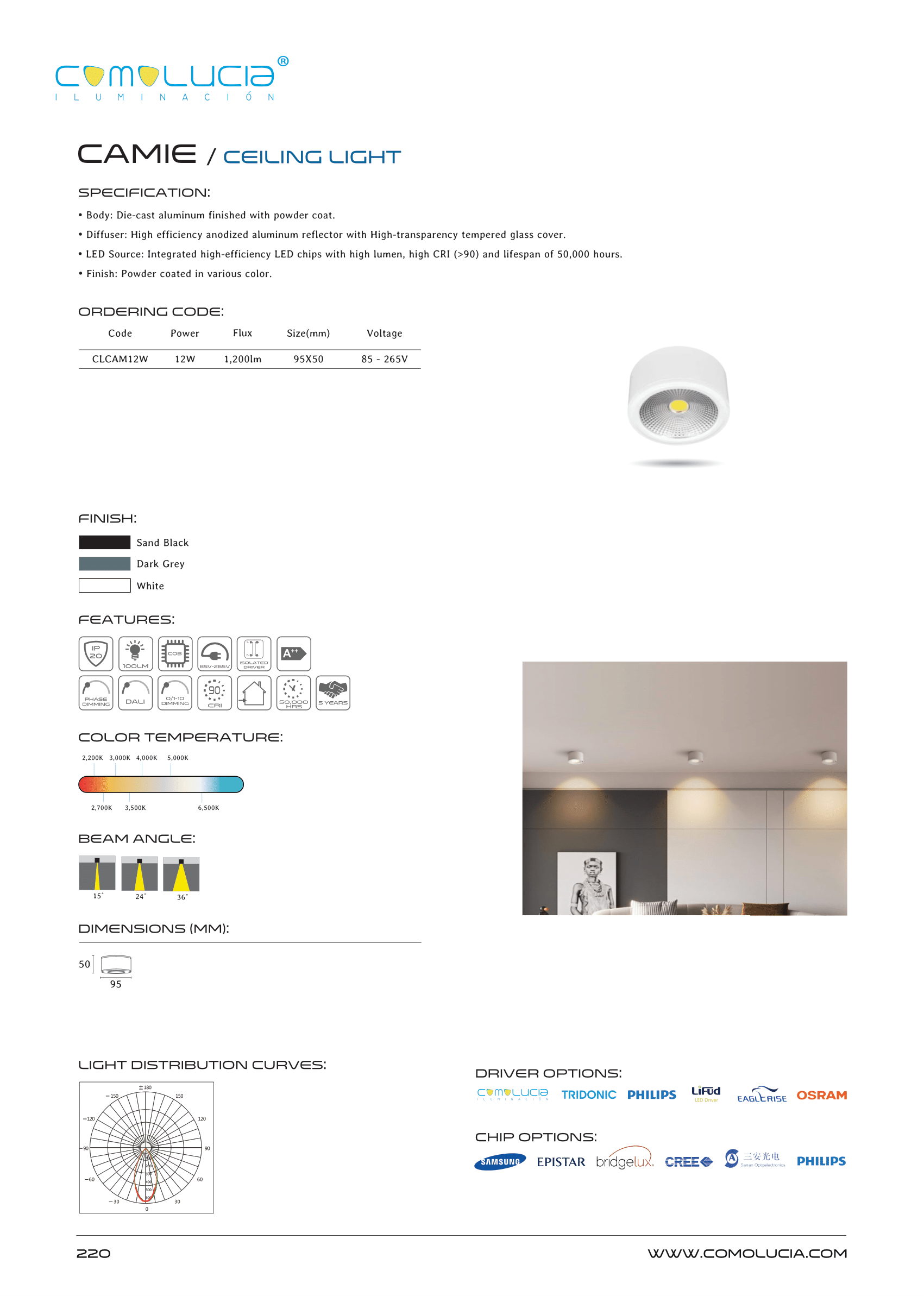 - LED Source: Integrated high-efficiency LED chips with high lumen, high CRI (>90) and lifespan of 50,000 hours.