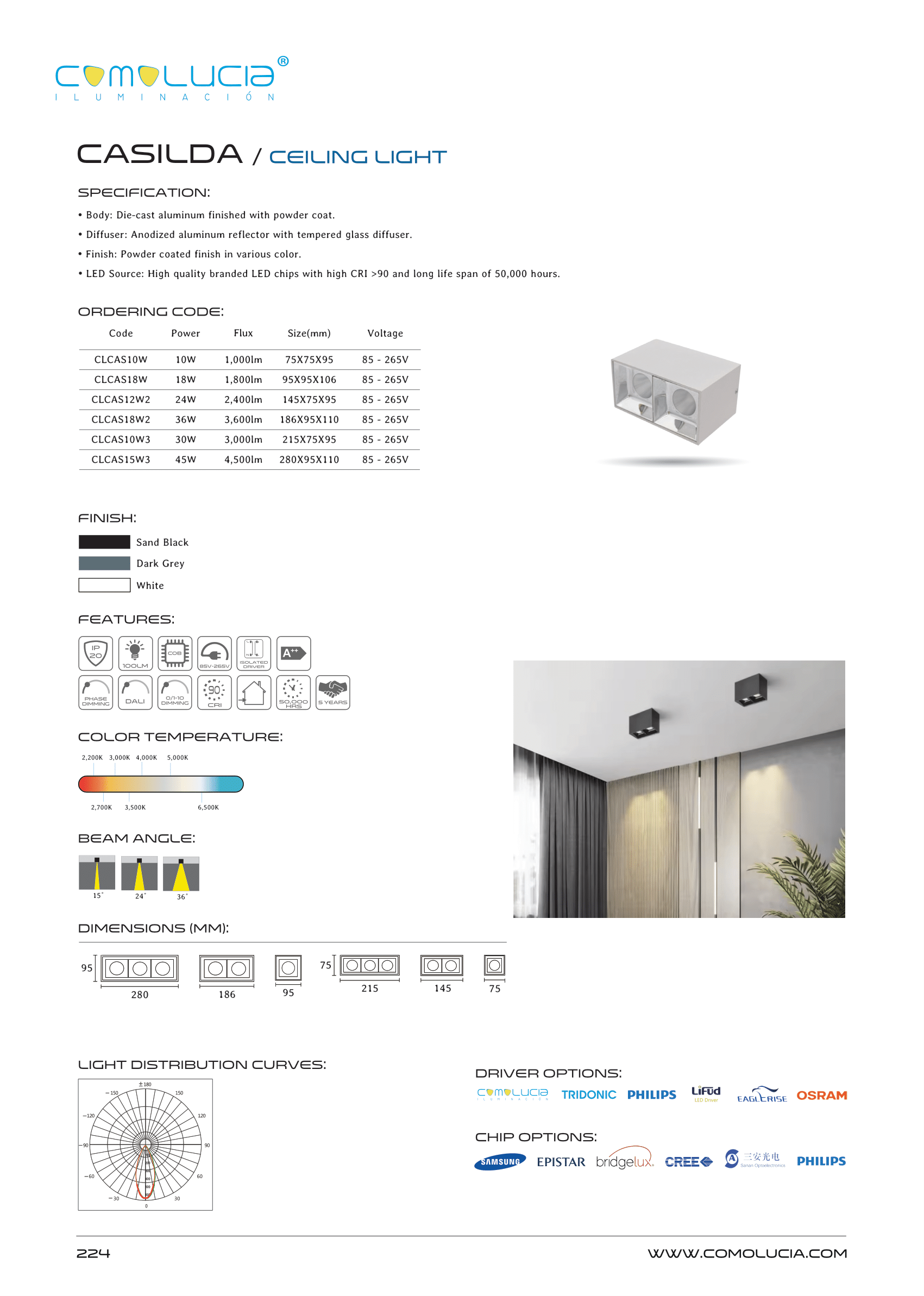 - LED Source: Integrated high-efficiency LED chips with high lumen, high CRI (>90) and lifespan of 50,000 hours.