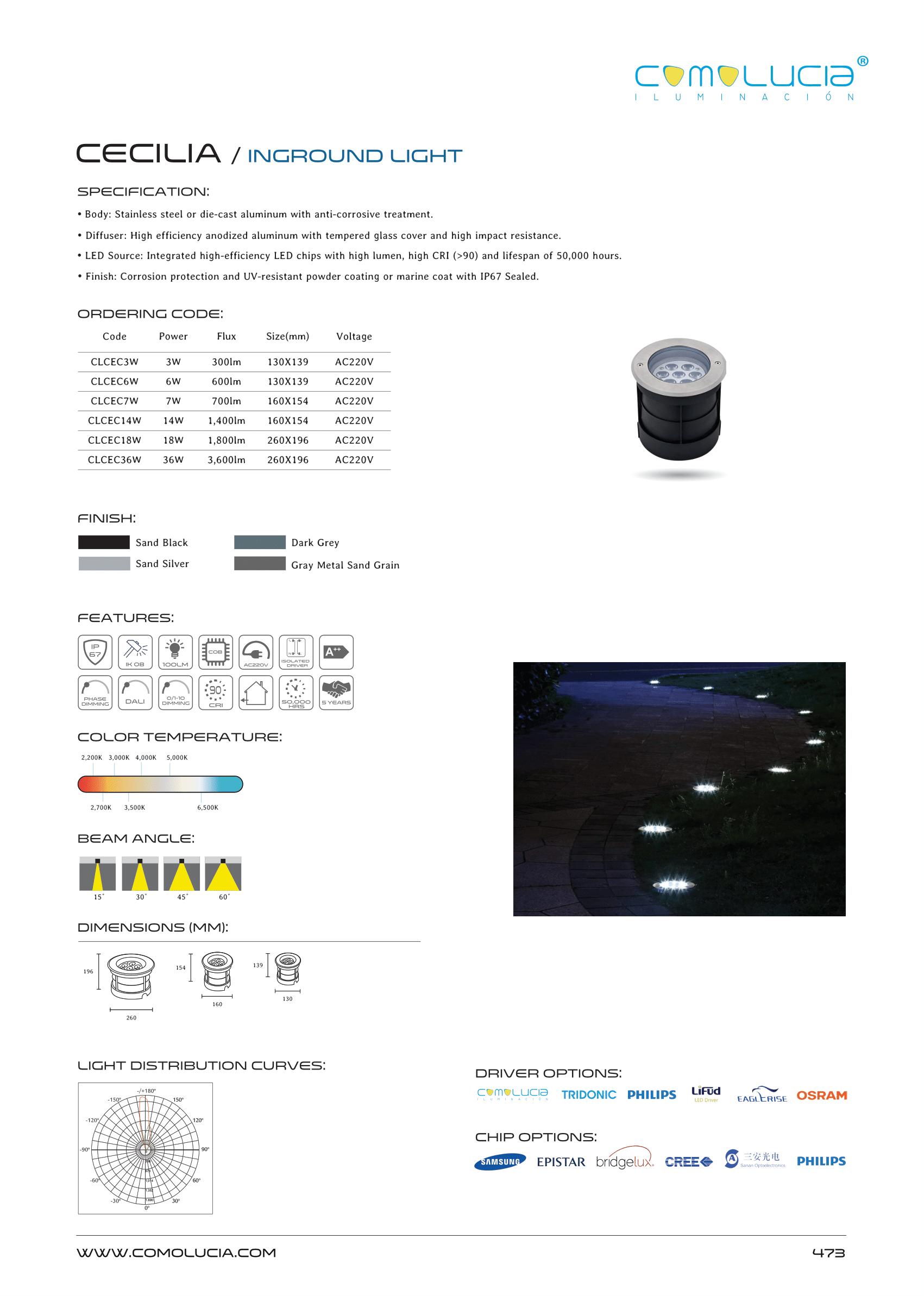 - Diffuser: High efficiency polycarbonate lens with High-transparency tempered glass cover.