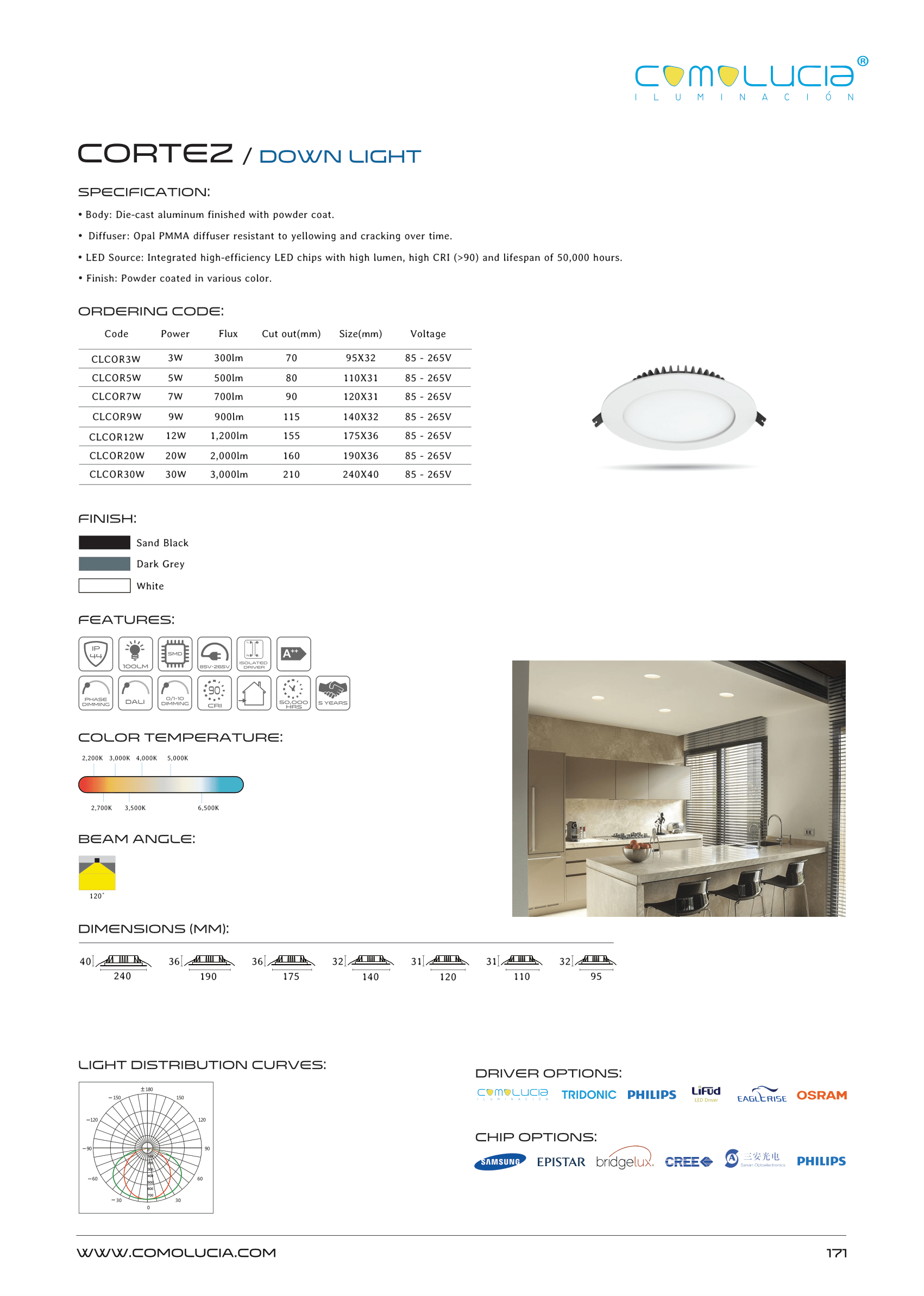- LED Source: Integrated high-efficiency LED chips with high lumen, high CRI (>90) and lifespan of 50,000 hours.
