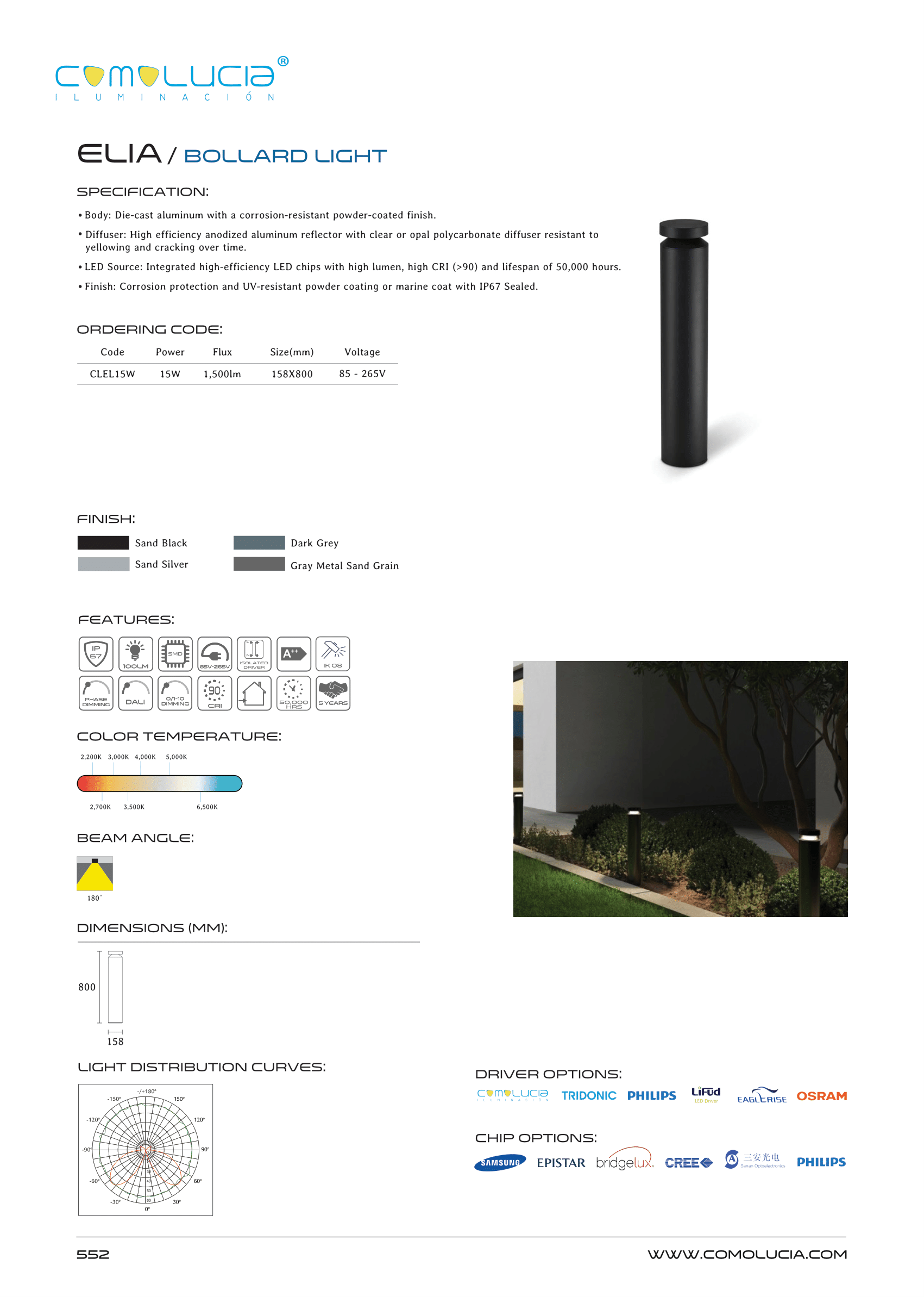 - LED Source: Integrated high-efficiency LED chips with high lumen, high CRI (>90) and lifespan of 50,000 hours.