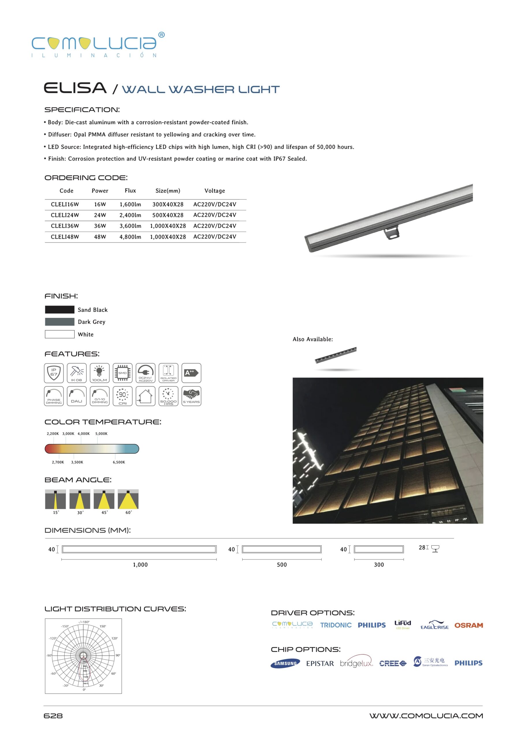 - LED Source: Integrated high-efficiency LED chips with high lumen, high CRI (>90) and lifespan of 50,000 hours.