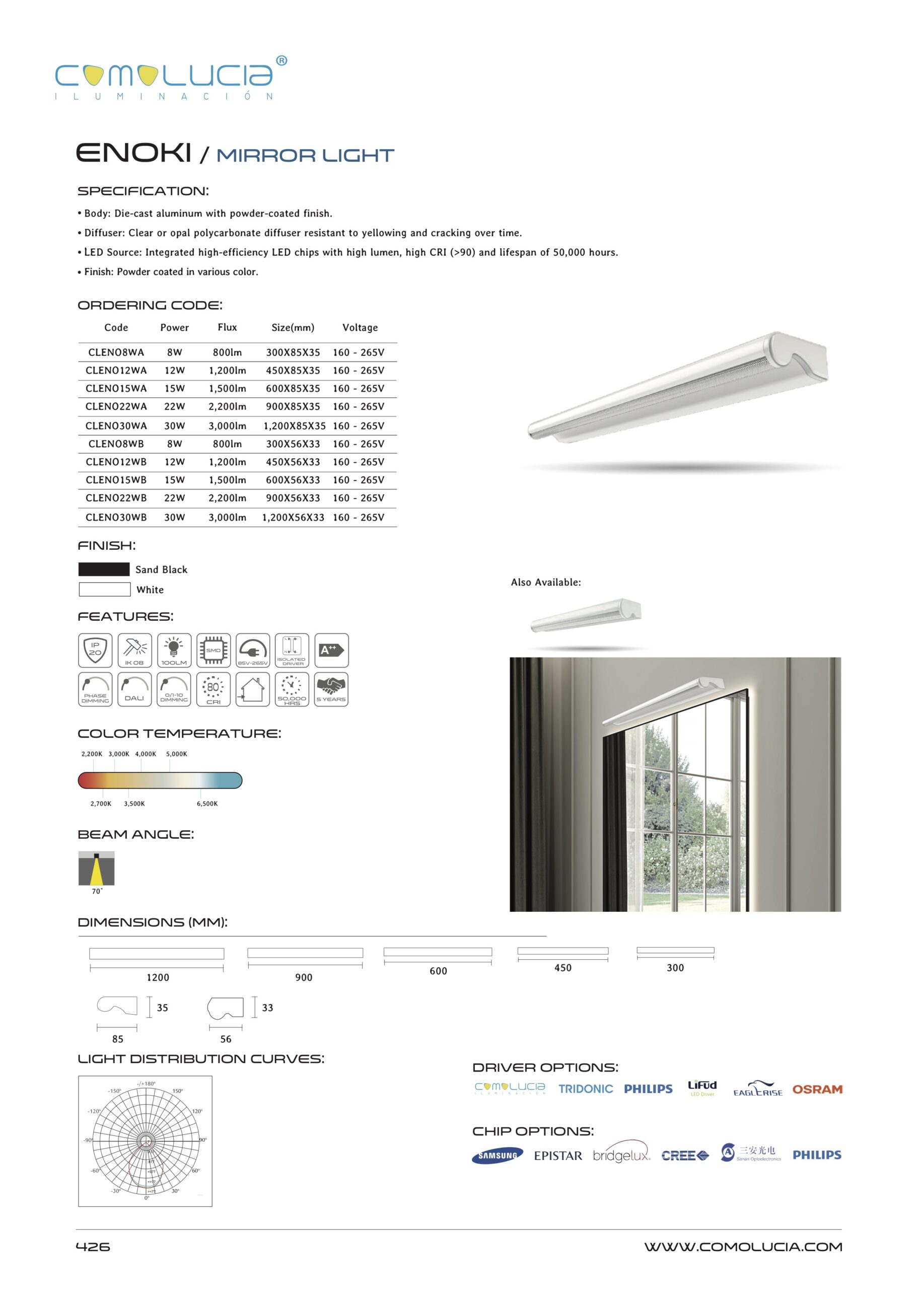 - LED Source: Integrated high-efficiency LED chips with high lumen, high CRI (>90) and lifespan of 50,000 hours.