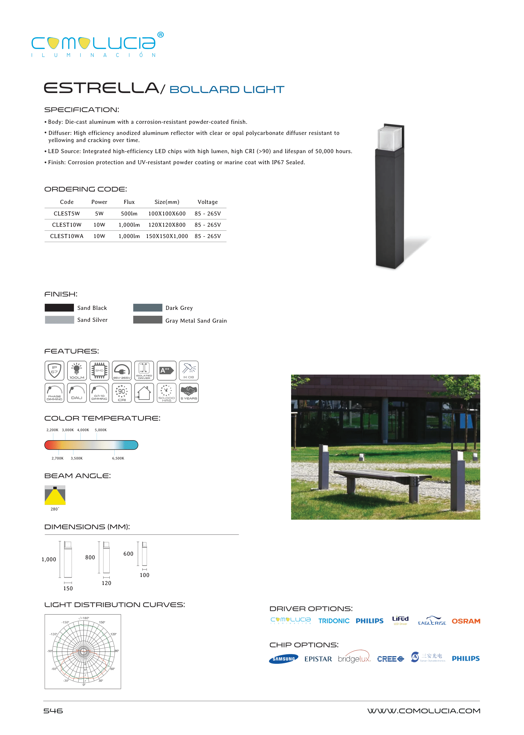 - LED Source: Integrated high-efficiency LED chips with high lumen, high CRI (>90) and lifespan of 50,000 hours.
