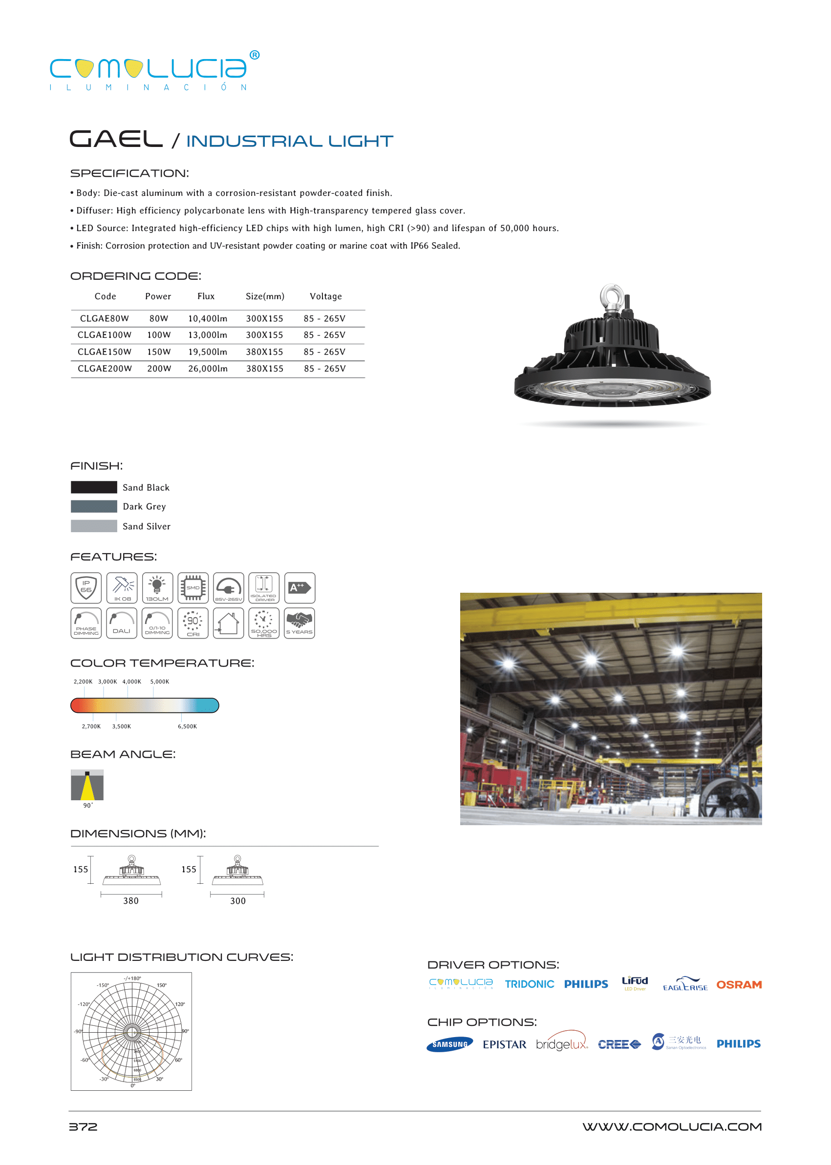 - LED Source: Integrated high-efficiency LED chips with high lumen, high CRI (>90) and lifespan of 50,000 hours.