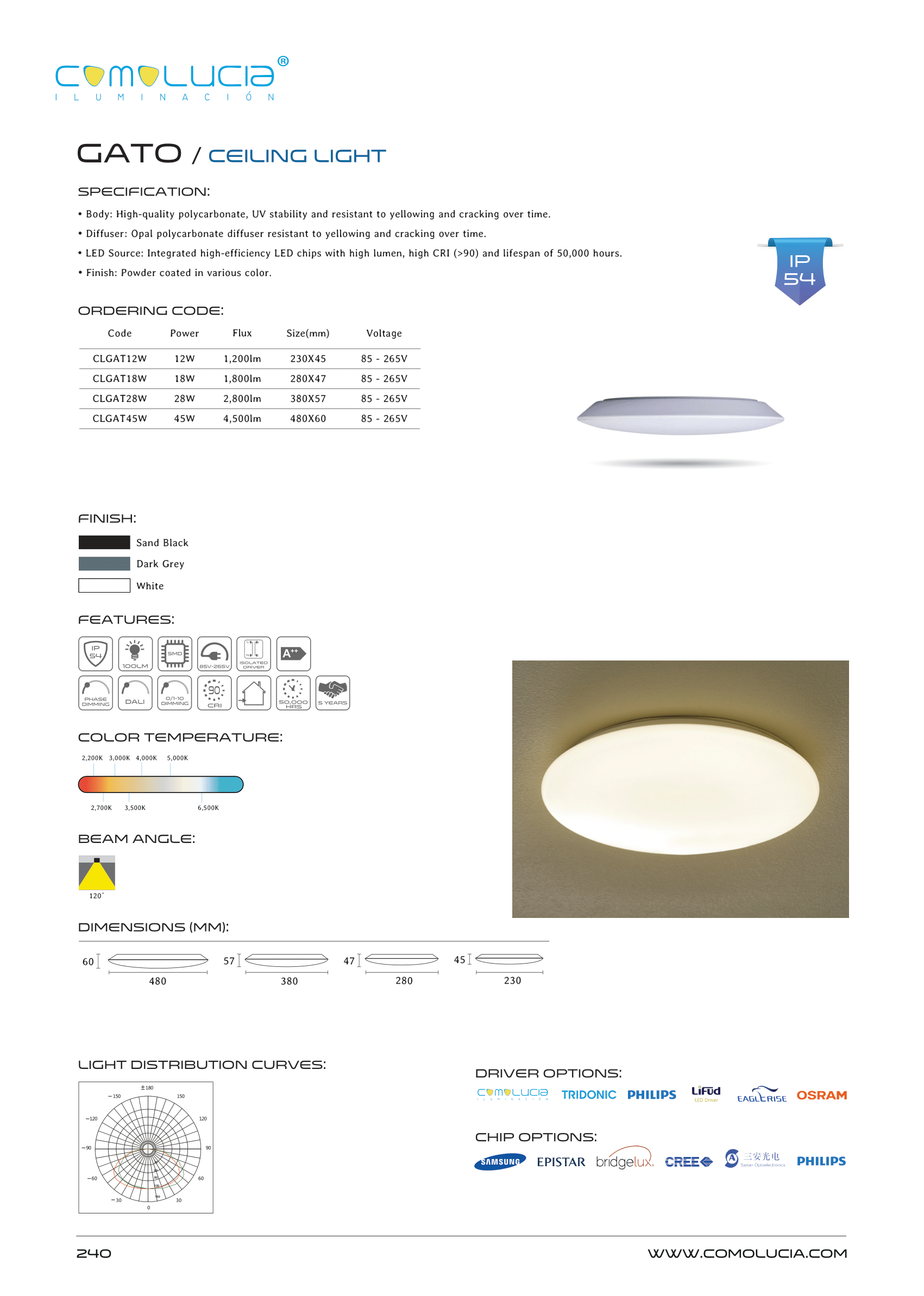 - LED Source: Integrated high-efficiency LED chips with high lumen, high CRI (>90) and lifespan of 50,000 hours.