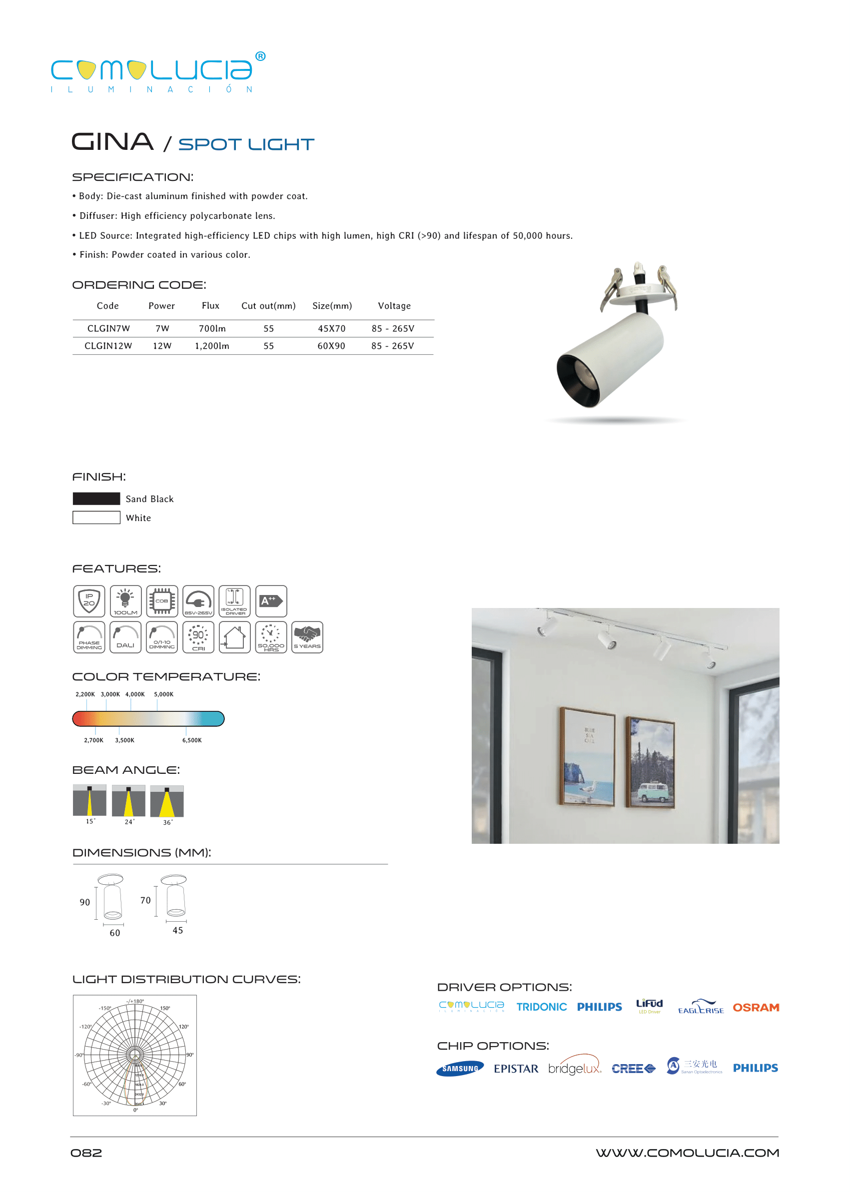 - LED Source: Integrated high-efficiency LED chips with high lumen, high CRI (>90) and lifespan of 50,000 hours.