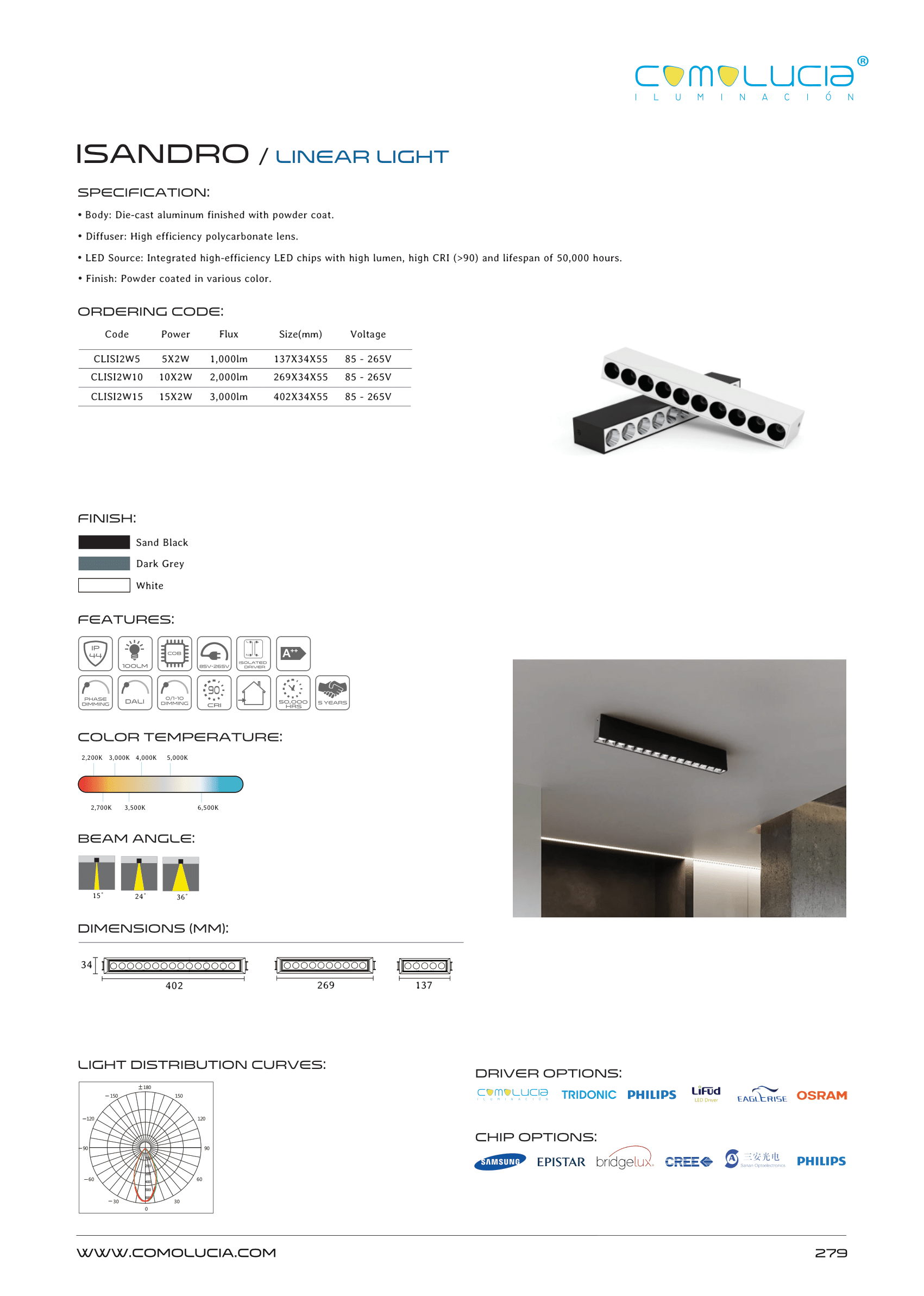 - LED Source: Integrated high-efficiency LED chips with high lumen, high CRI (>90) and lifespan of 50,000 hours.