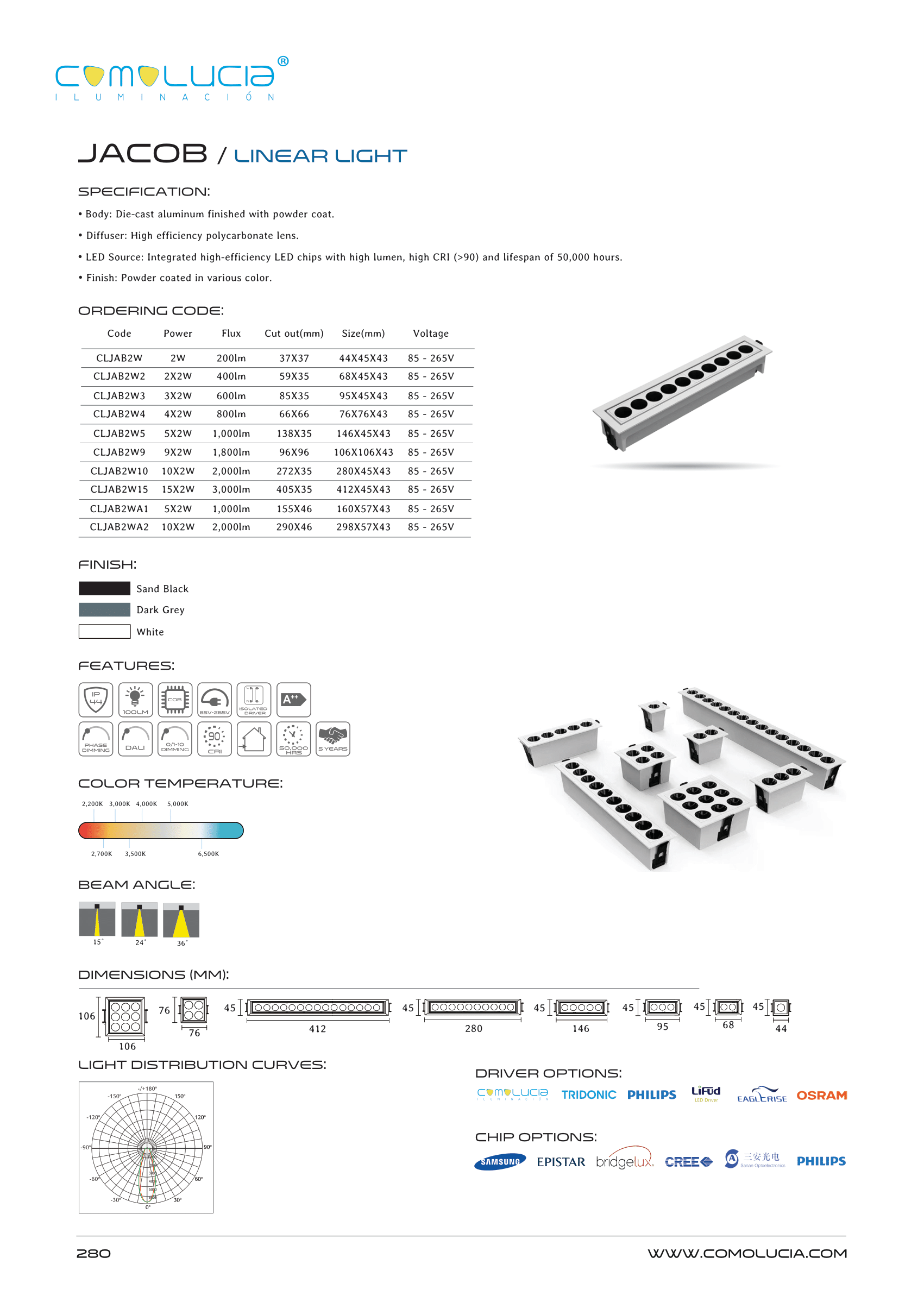 - LED Source: Integrated high-efficiency LED chips with high lumen, high CRI (>90) and lifespan of 50,000 hours.