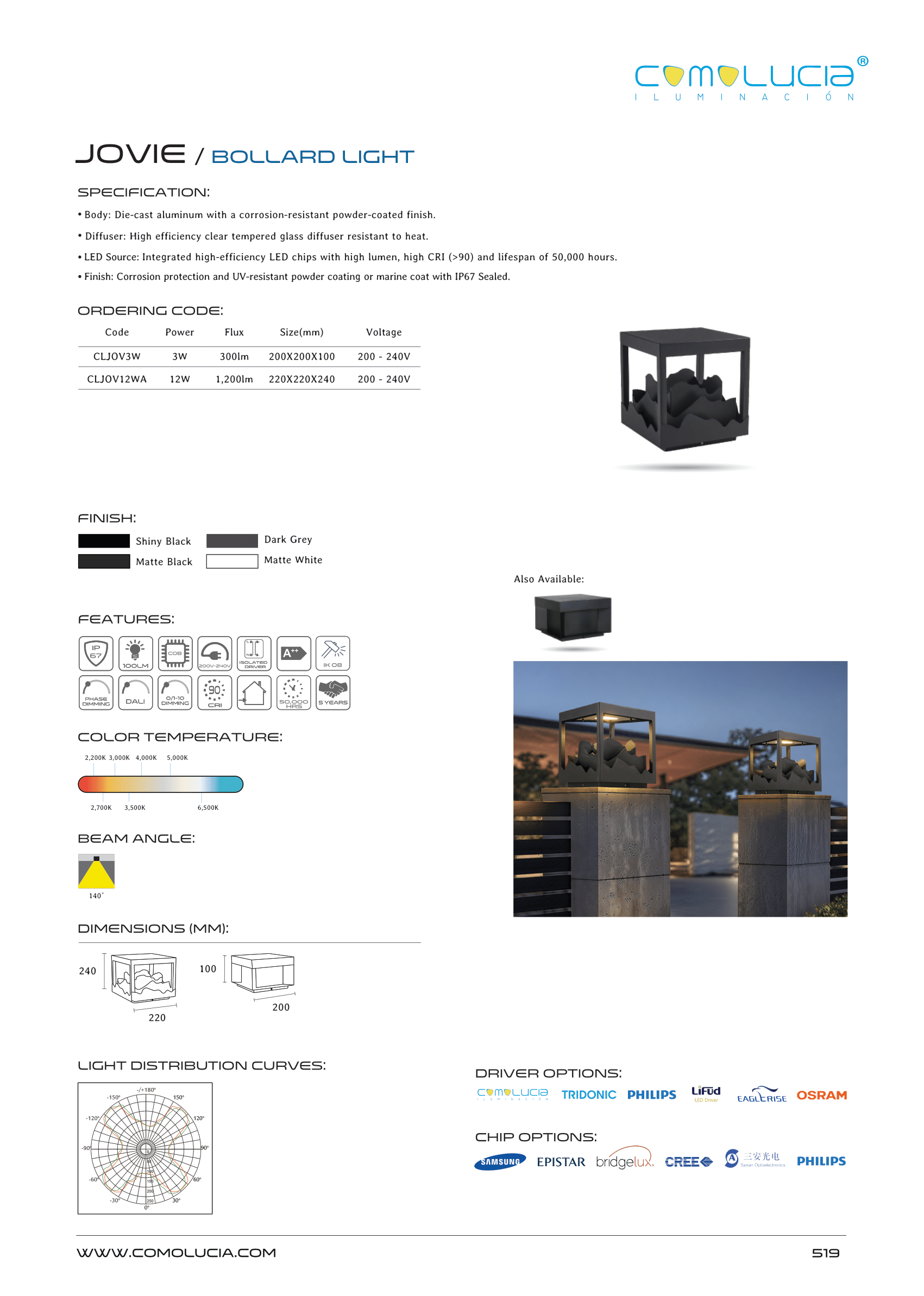 - Finish: Corrosion protection and UV-resistant powder coating or marine coat with IP67 Sealed.
