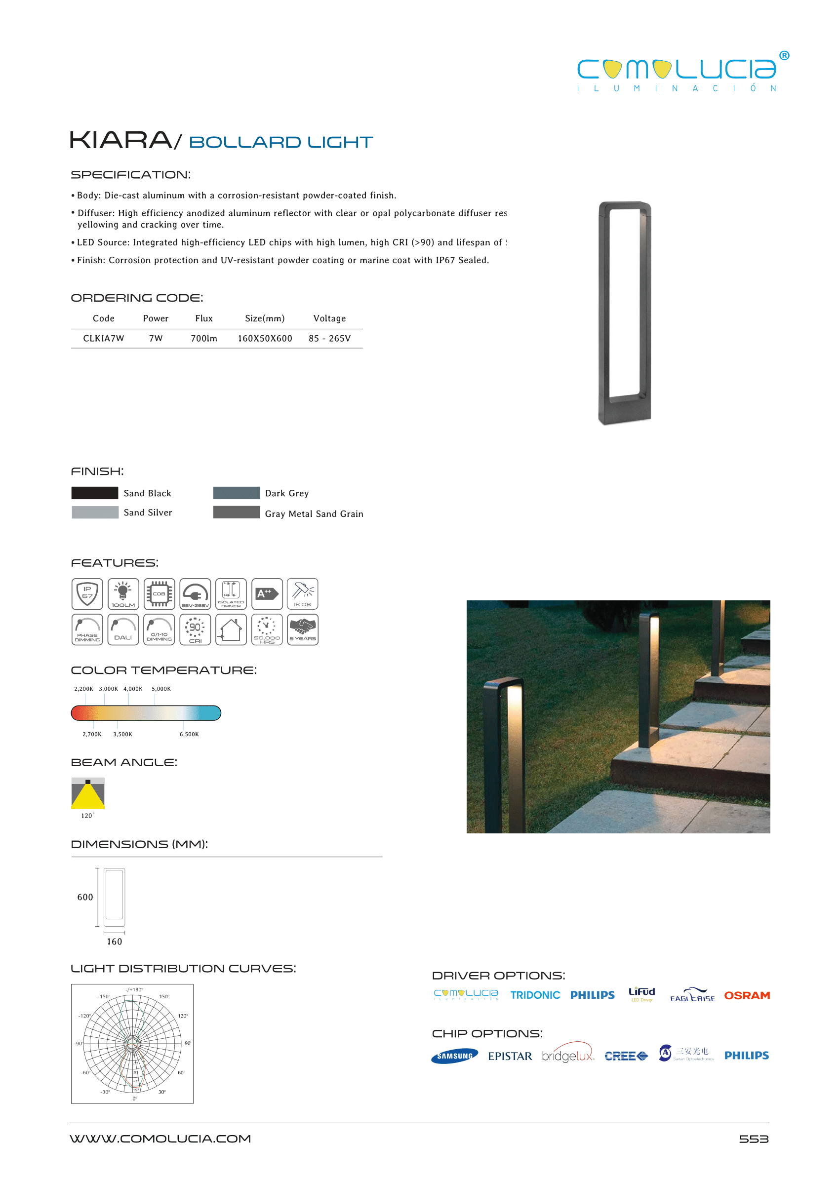 - LED Source: Integrated high-efficiency LED chips with high lumen, high CRI (>90) and lifespan of 50,000 hours.