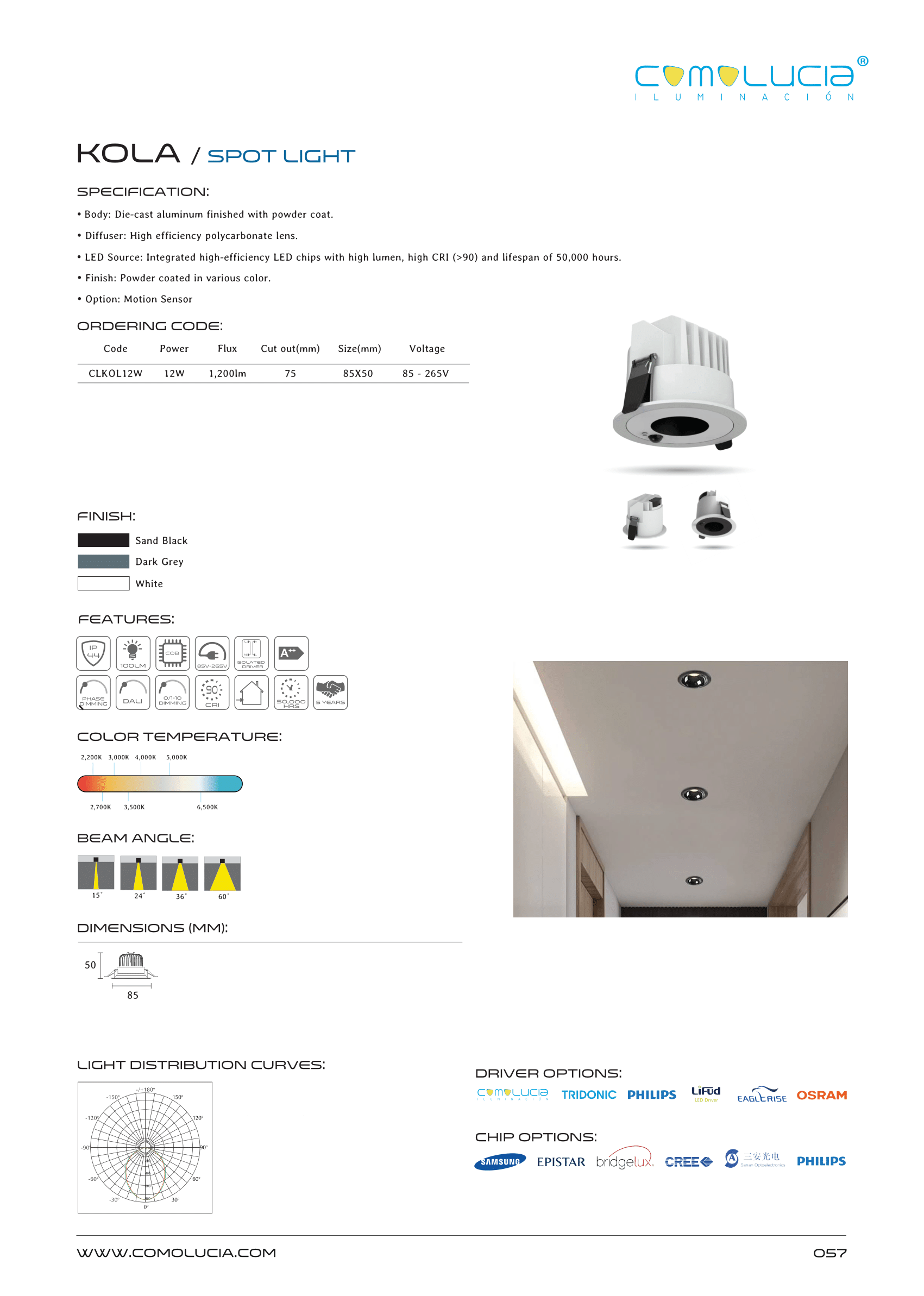 - LED Source: Integrated high-efficiency LED chips with high lumen, high CRI (>90) and lifespan of 50,000 hours.