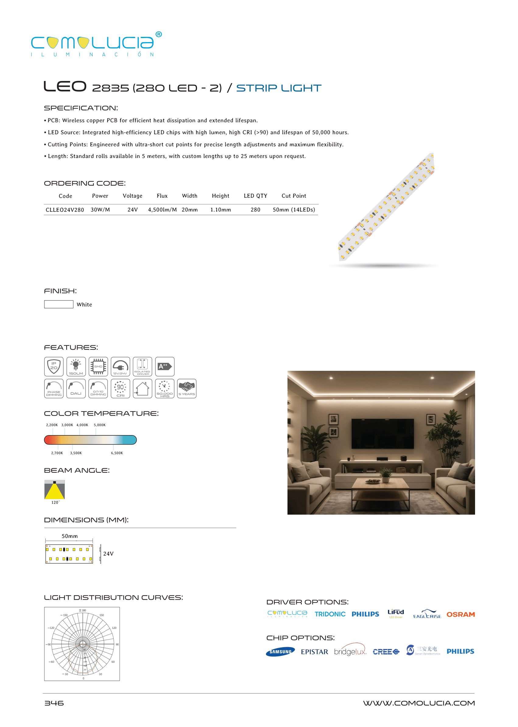 - LED Source: Integrated high-efficiency LED chips with high lumen, high CRI (>90) and lifespan of 50,000 hours.
