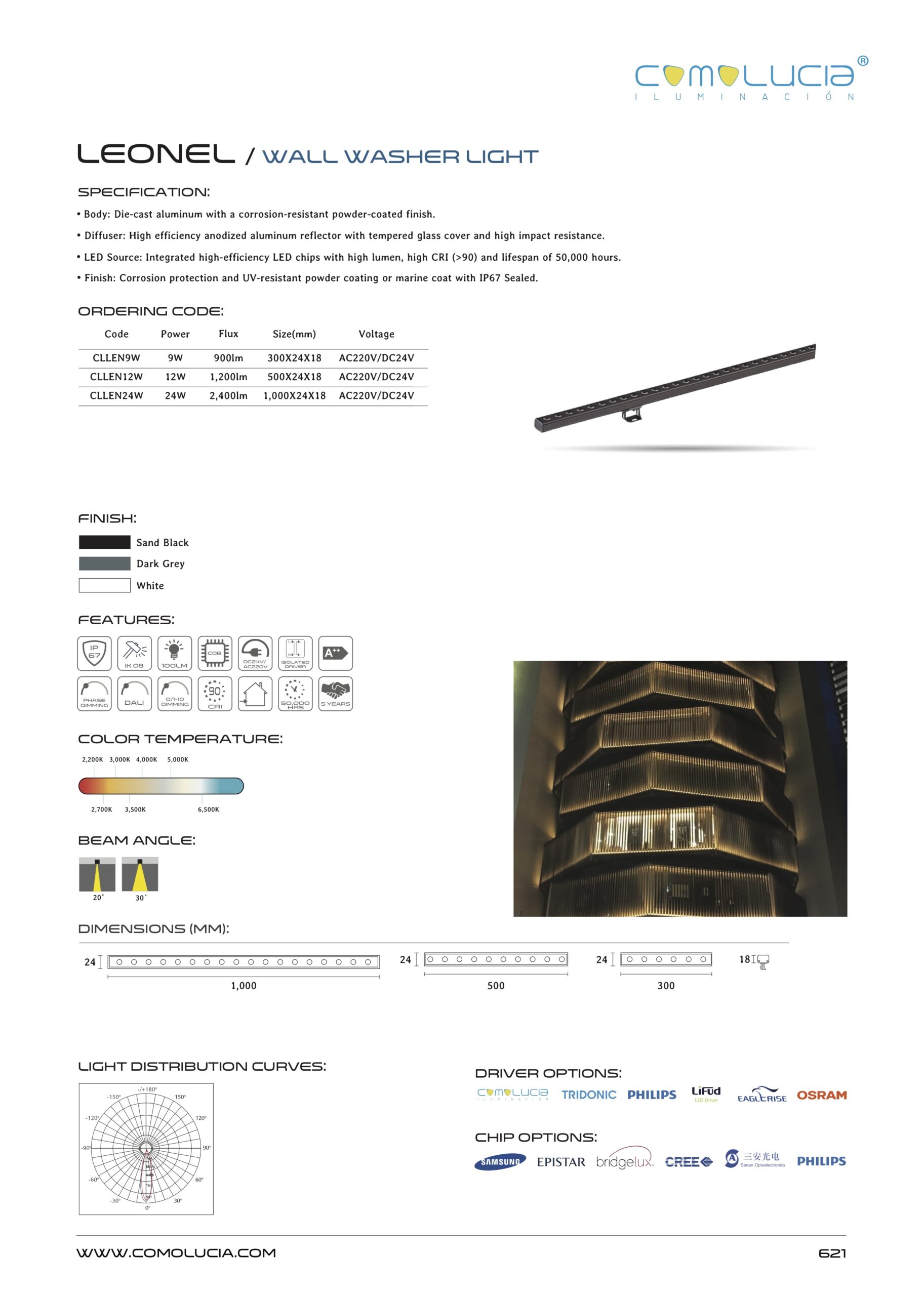 - LED Source: Integrated high-efficiency LED chips with high lumen, high CRI (>90) and lifespan of 50,000 hours.