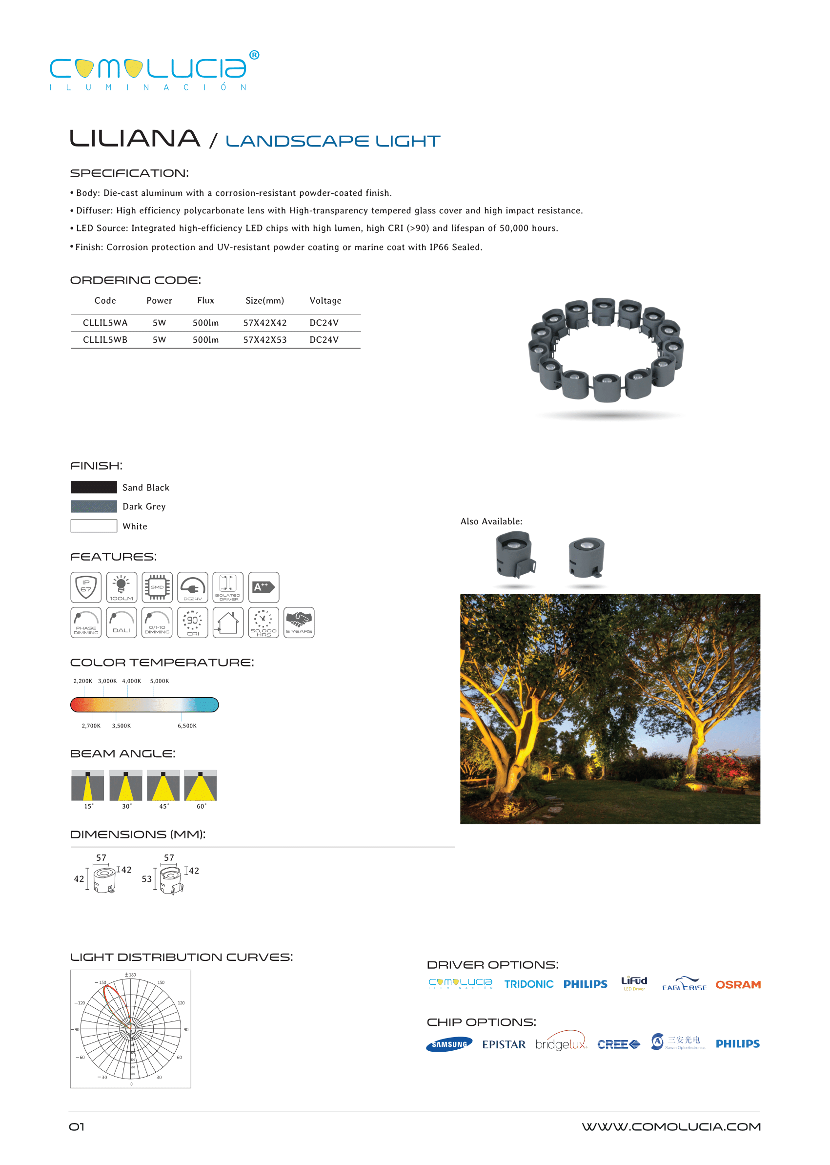 - LED Source: Integrated high-efficiency LED chips with high lumen, high CRI (>90) and lifespan of 50,000 hours.
