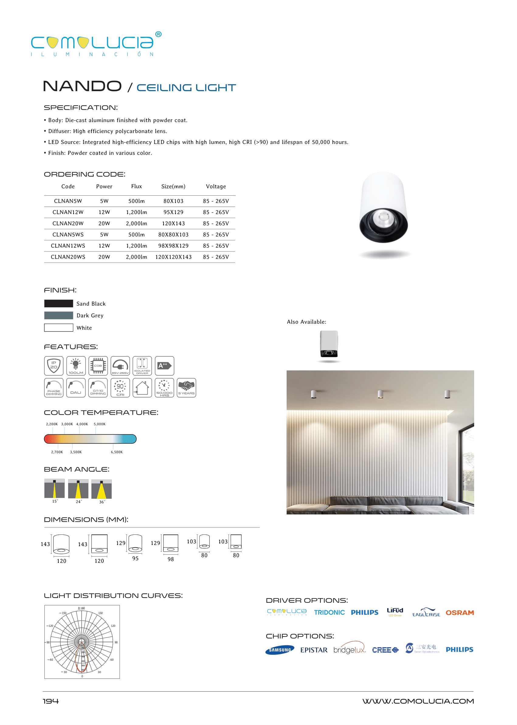 - LED Source: Integrated high-efficiency LED chips with high lumen, high CRI (>90) and lifespan of 50,000 hours.