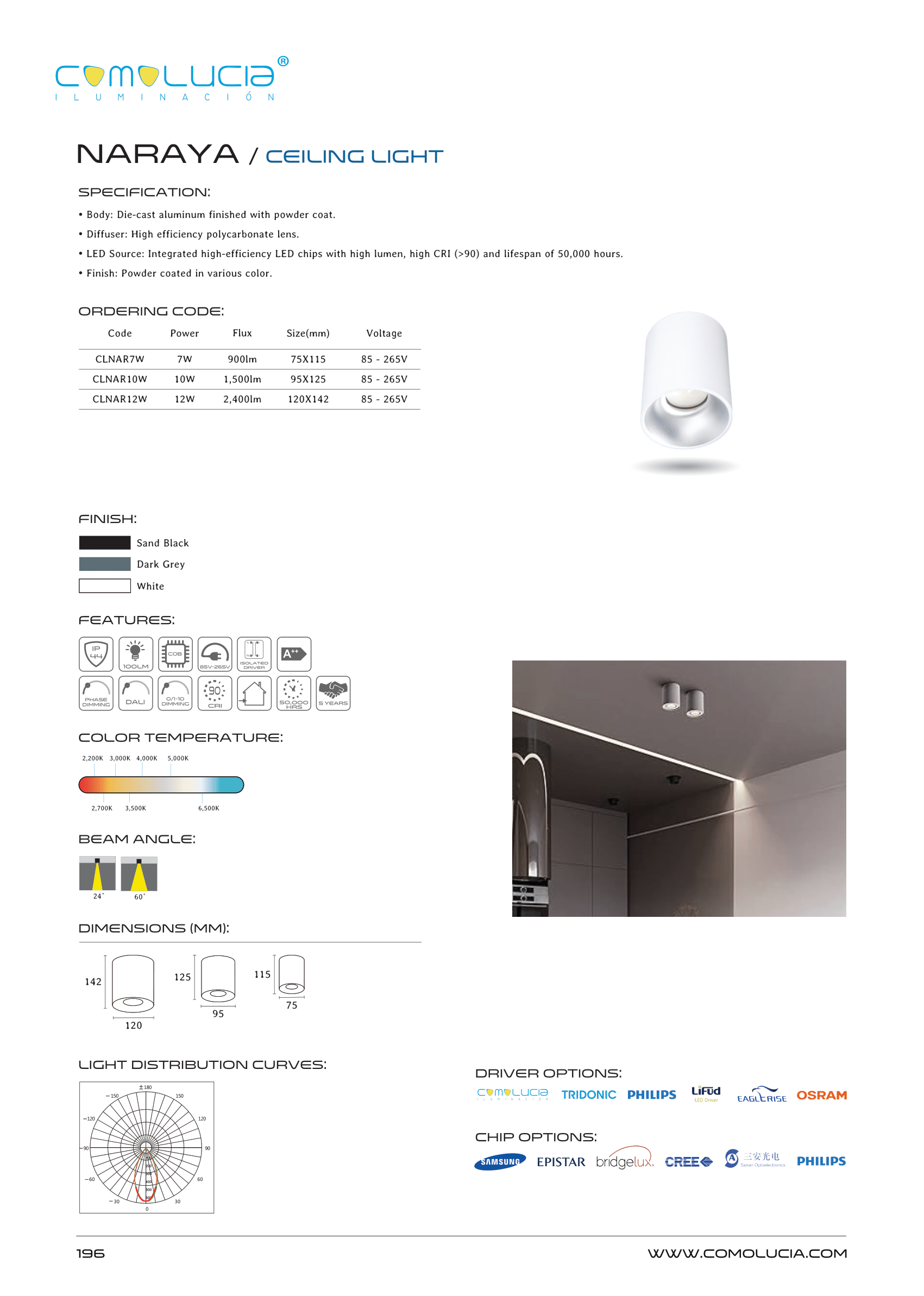 - LED Source: Integrated high-efficiency LED chips with high lumen, high CRI (>90) and lifespan of 50,000 hours.