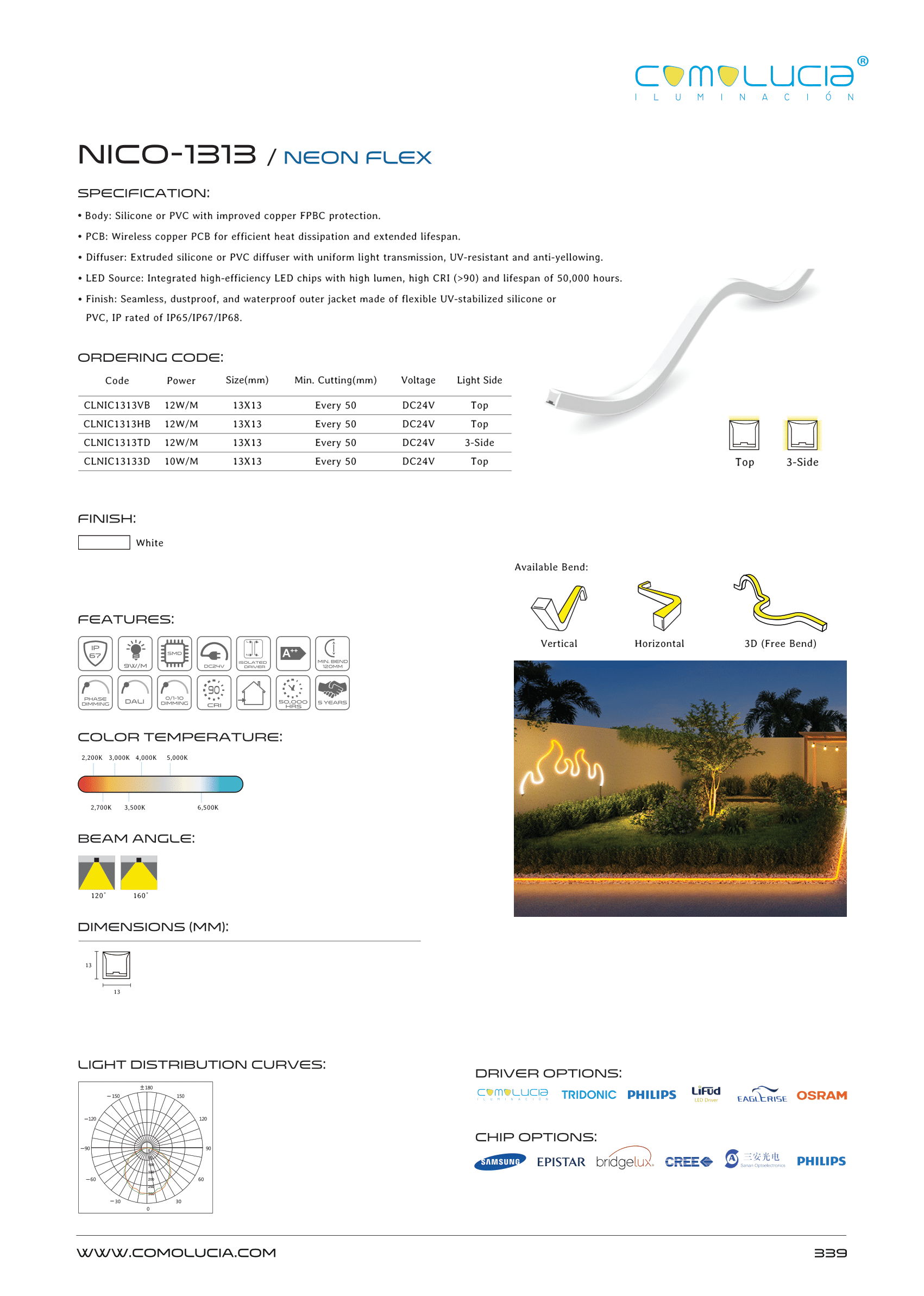 - LED Source: Integrated high-efficiency LED chips with high lumen, high CRI (>90) and lifespan of 50,000 hours.