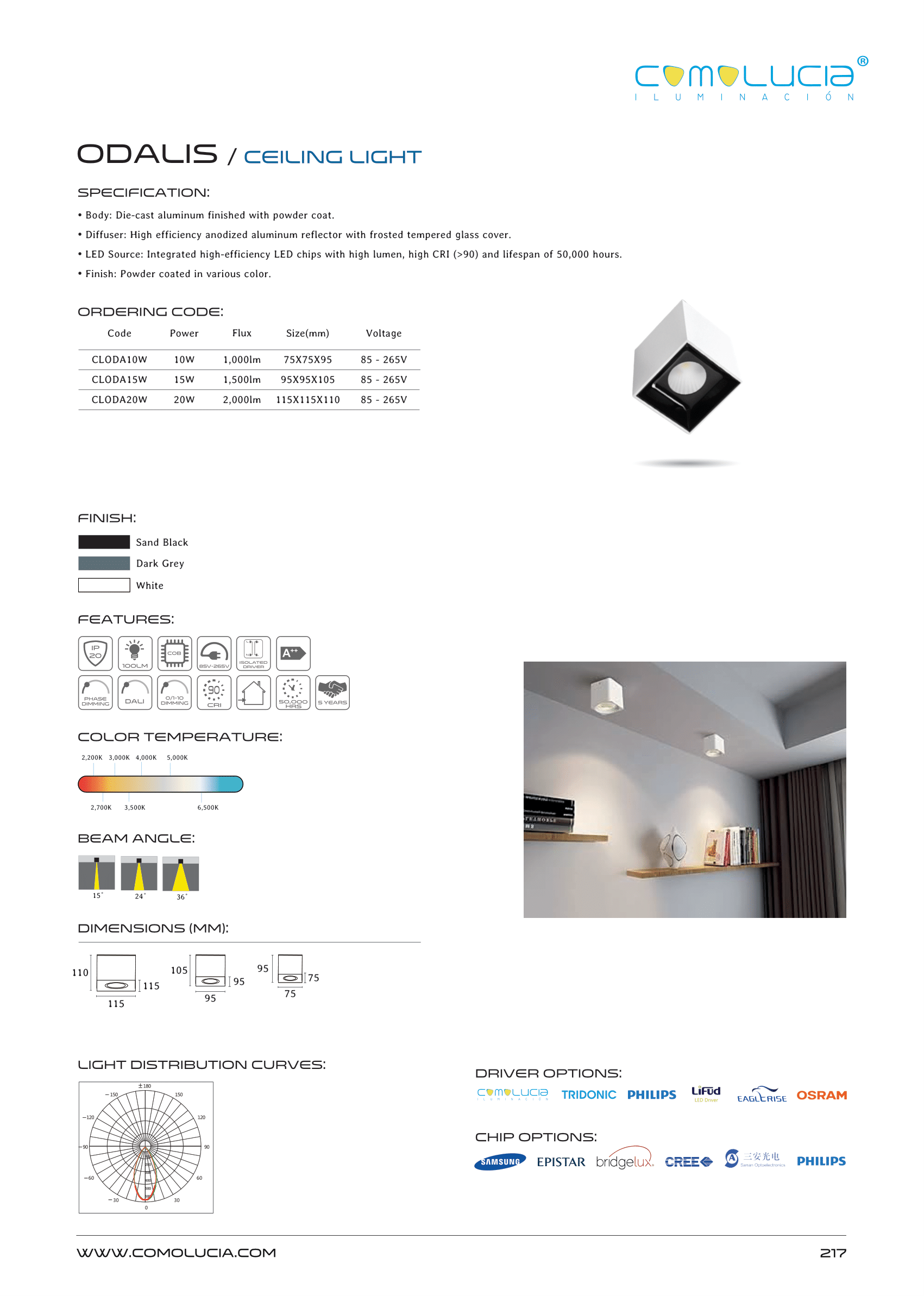 - LED Source: Integrated high-efficiency LED chips with high lumen, high CRI (>90) and lifespan of 50,000 hours.