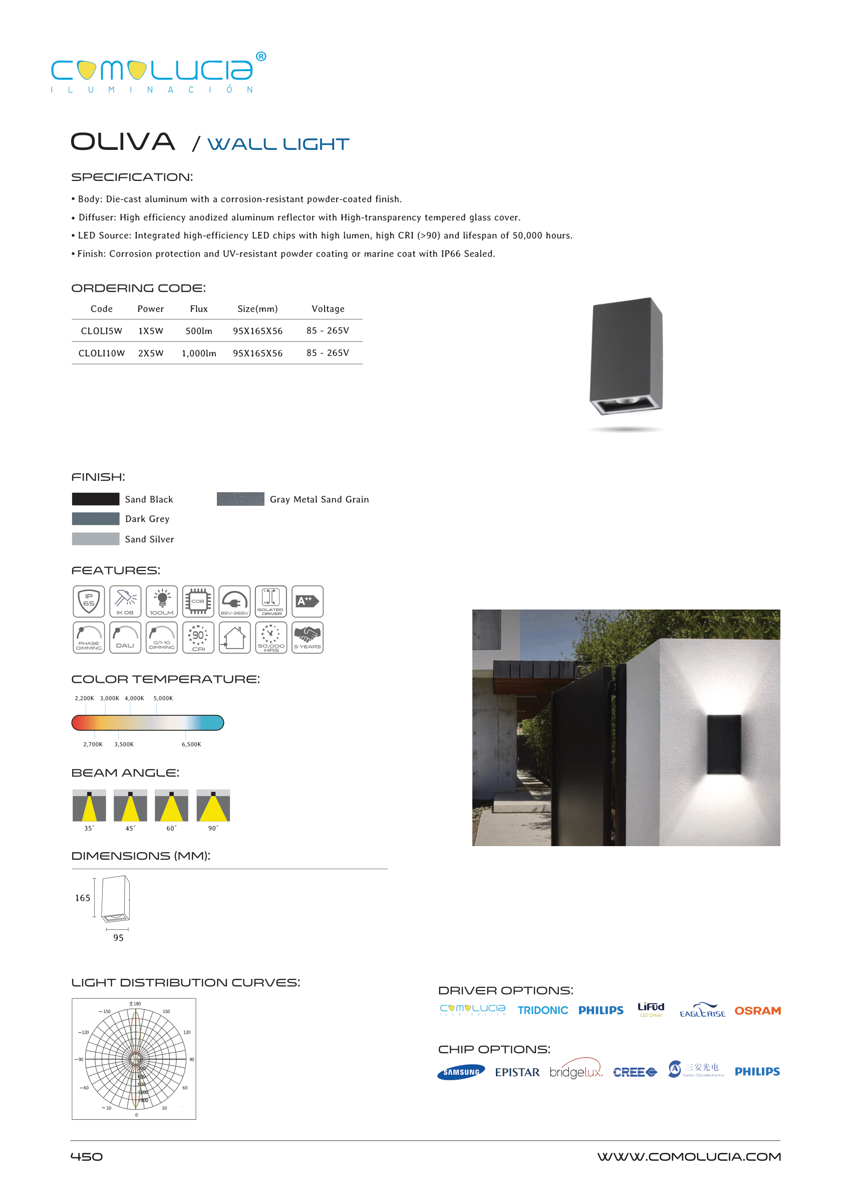 - Diffuser: High efficiency anodized aluminum reflector with High-transparency tempered glass cover.