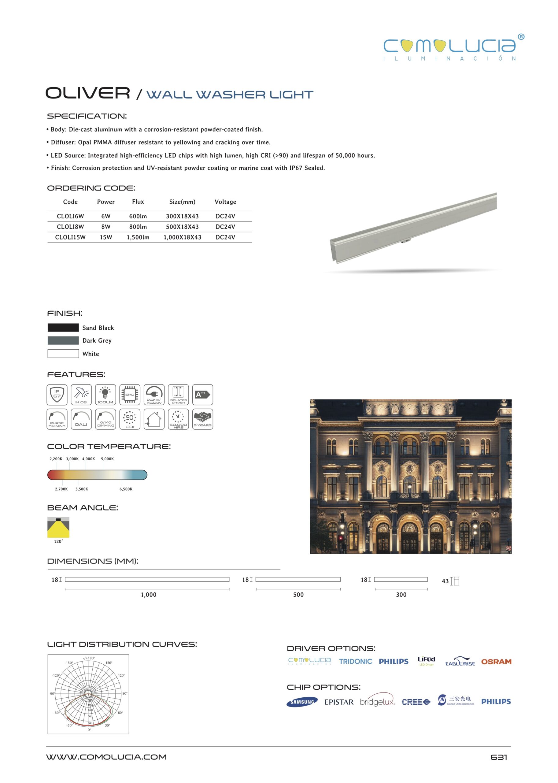 - LED Source: Integrated high-efficiency LED chips with high lumen, high CRI (>90) and lifespan of 50,000 hours.
