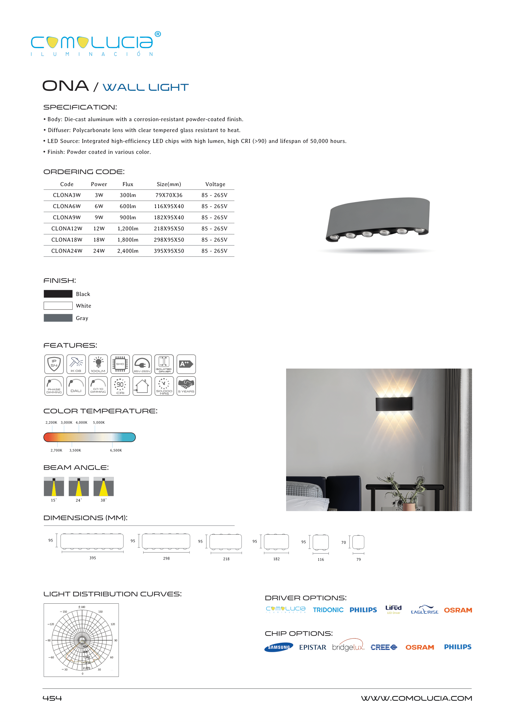 - LED Source: Integrated high-efficiency LED chips with high lumen, high CRI (>90) and lifespan of 50,000 hours.