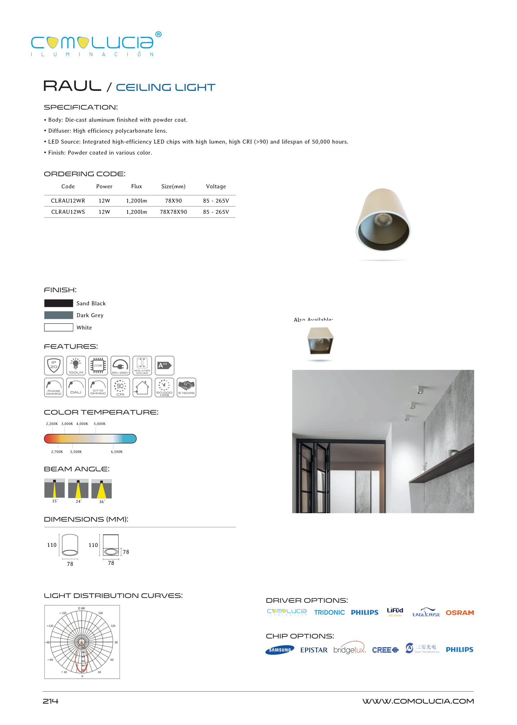 - LED Source: Integrated high-efficiency LED chips with high lumen, high CRI (>90) and lifespan of 50,000 hours.