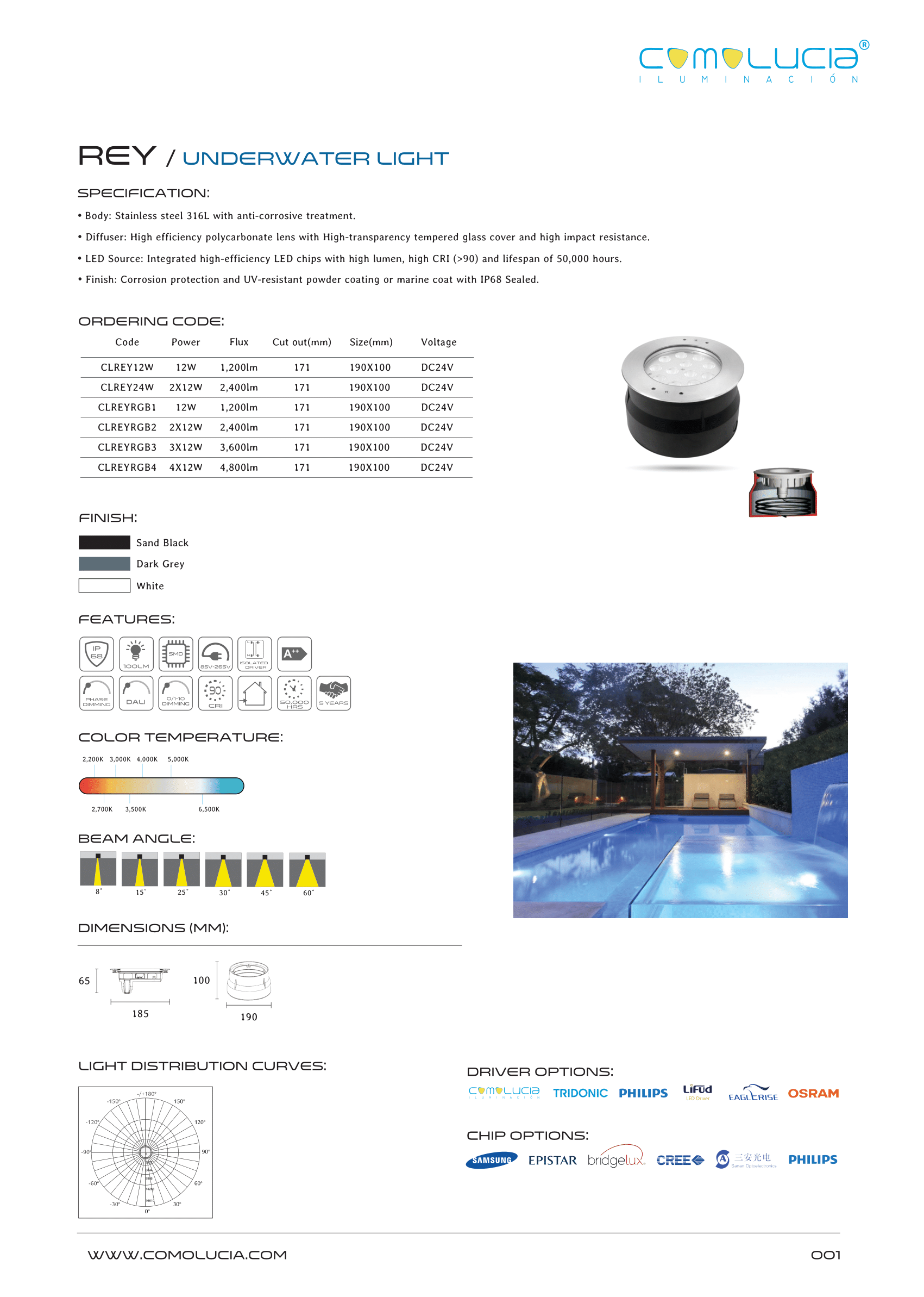 - Finish: Corrosion protection and UV-resistant powder coating or marine coat with IP68 Sealed.