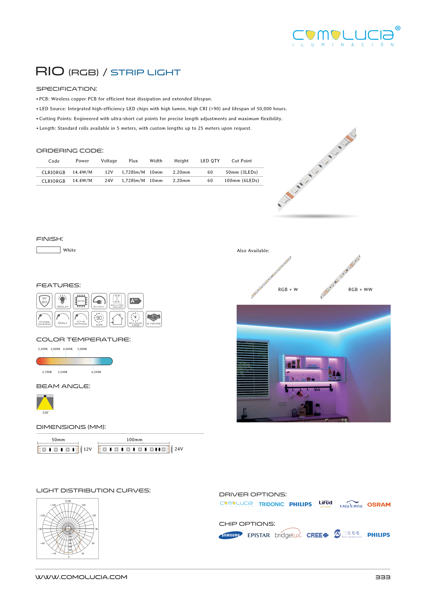 - LED Source: Integrated high-efficiency LED chips with high lumen, high CRI (>90) and lifespan of 50,000 hours.