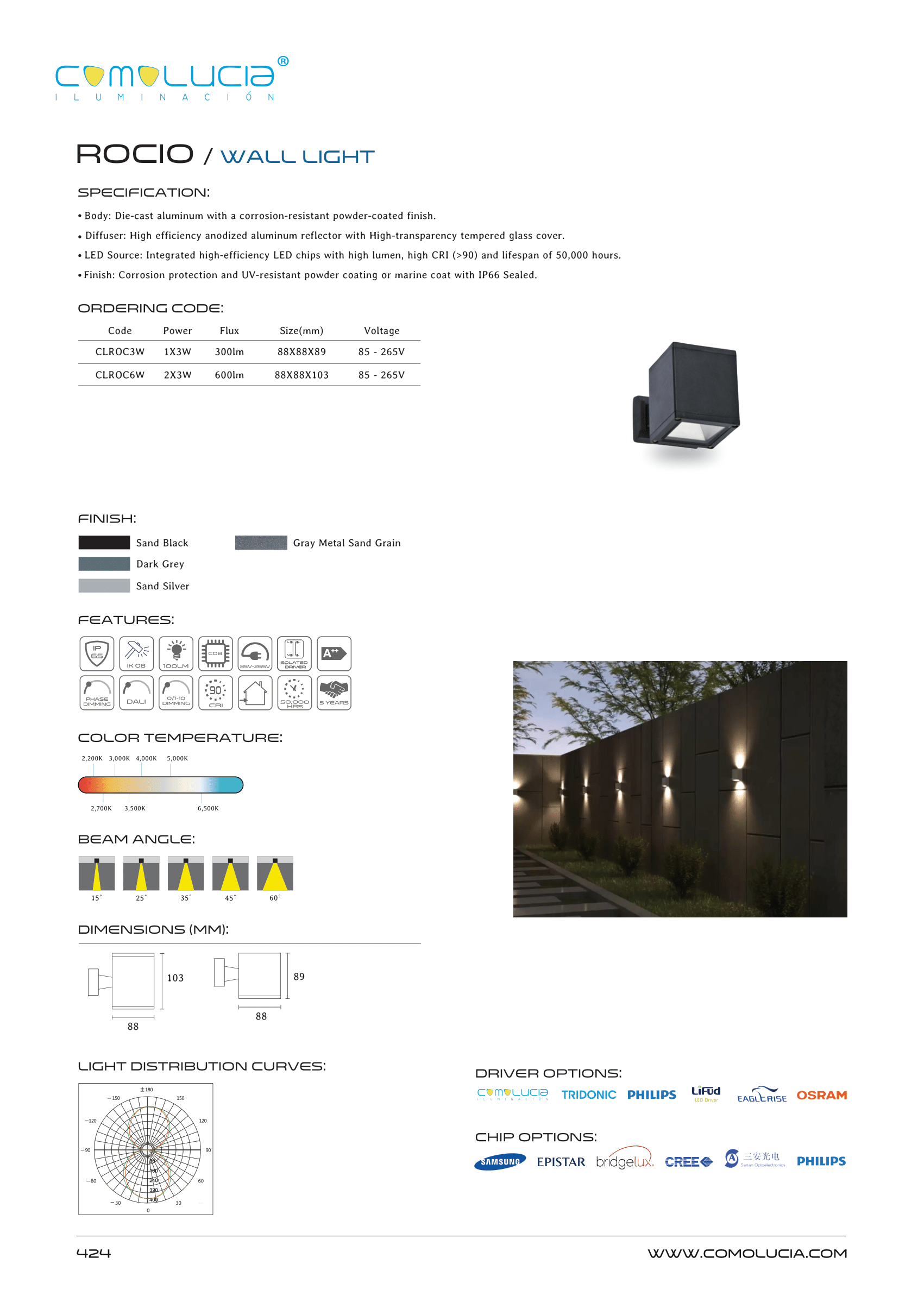 - Diffuser: High efficiency anodized aluminum reflector with High-transparency tempered glass cover.