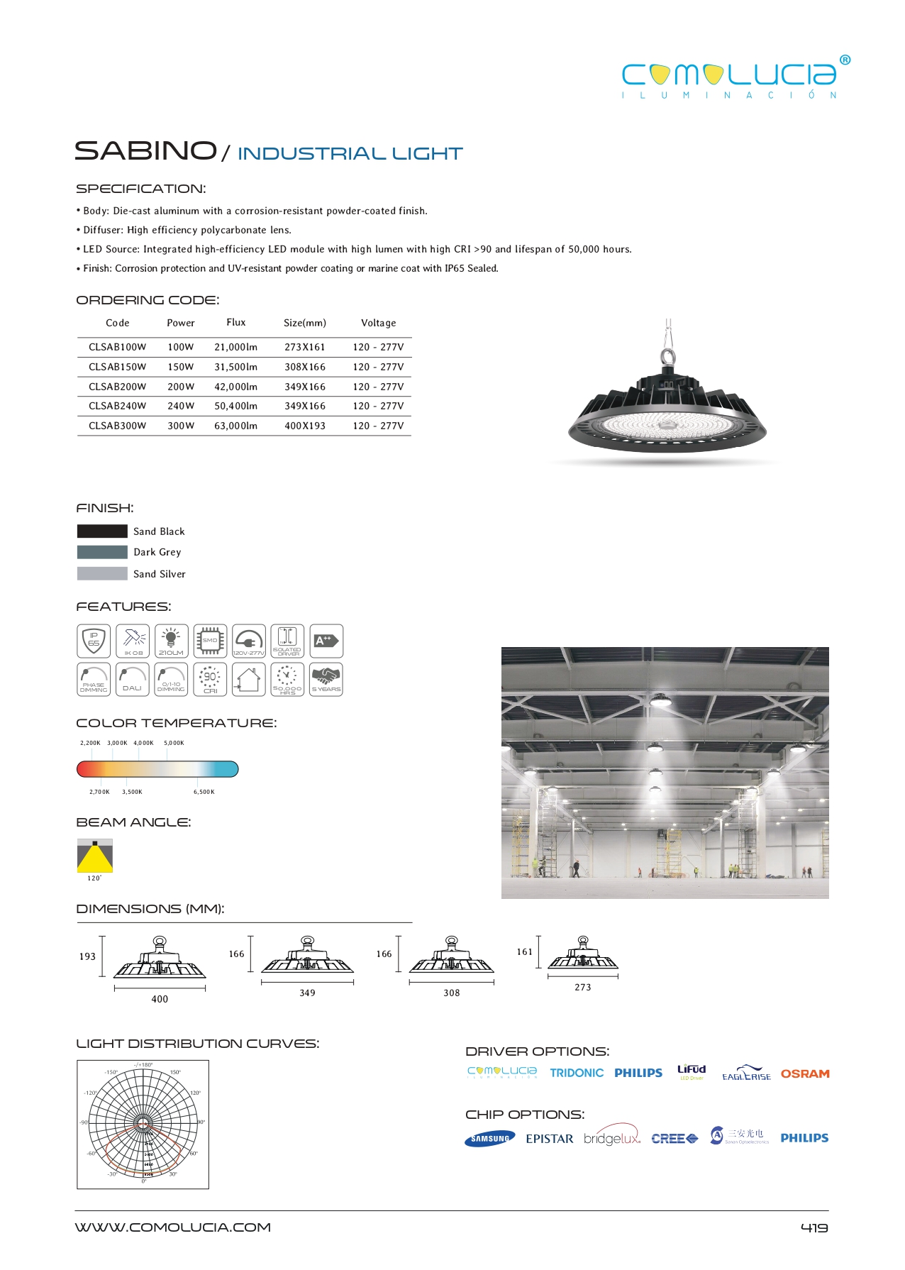 - LED Source: Integrated high-efficiency LED module with high lumen with high CRI >90 and lifespan of 50,000 hours.