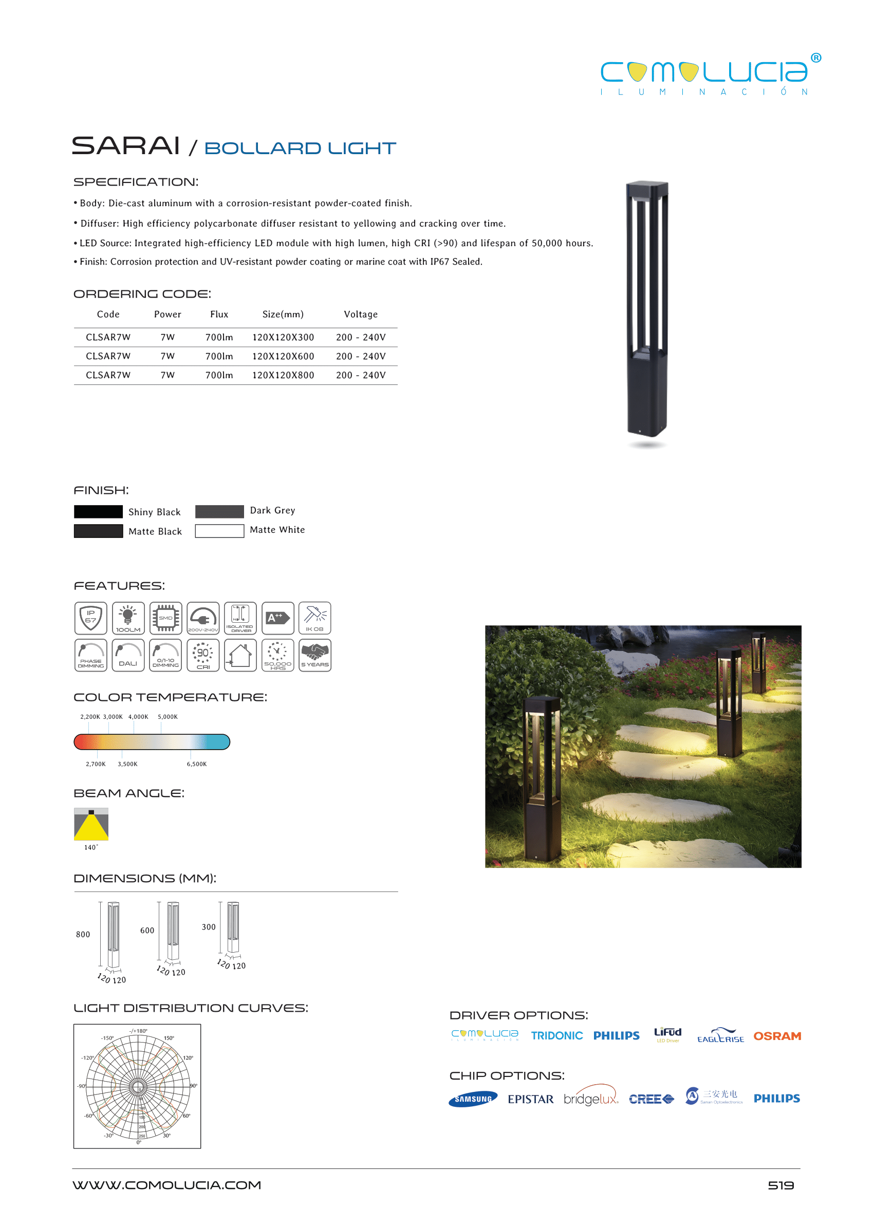 - LED Source: Integrated high-efficiency LED module with high lumen, high CRI (>90) and lifespan of 50,000 hours.