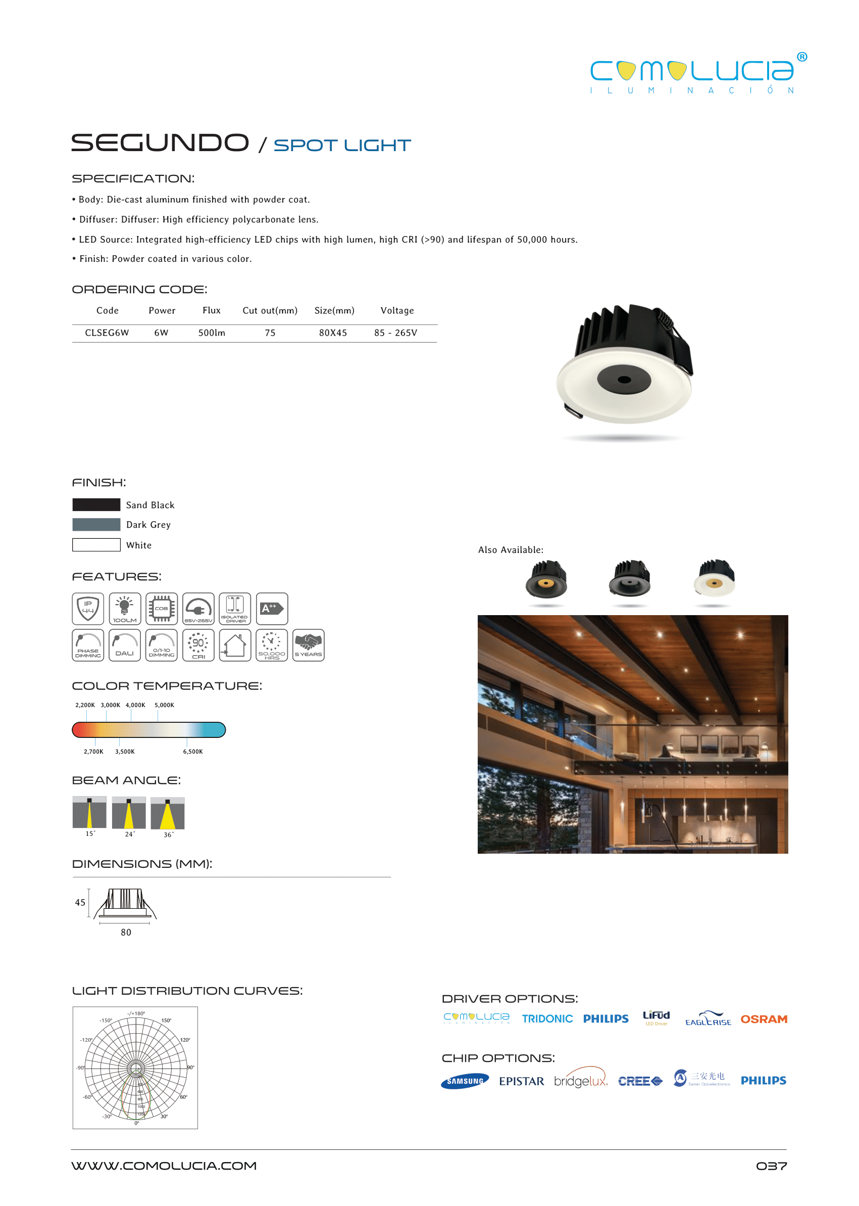 - LED Source: Integrated high-efficiency LED chips with high lumen, high CRI (>90) and lifespan of 50,000 hours. Finish:
