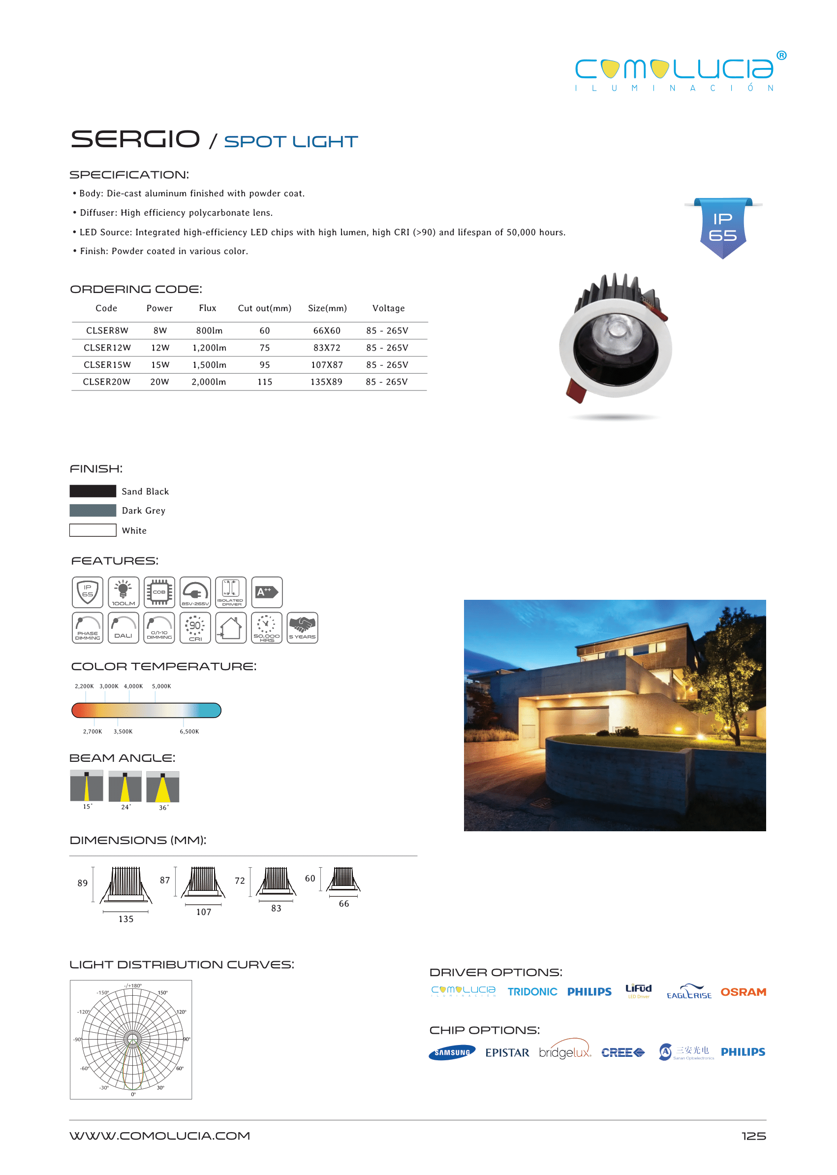 - LED Source: Integrated high-efficiency LED chips with high lumen, high CRI (>90) and lifespan of 50,000 hours.