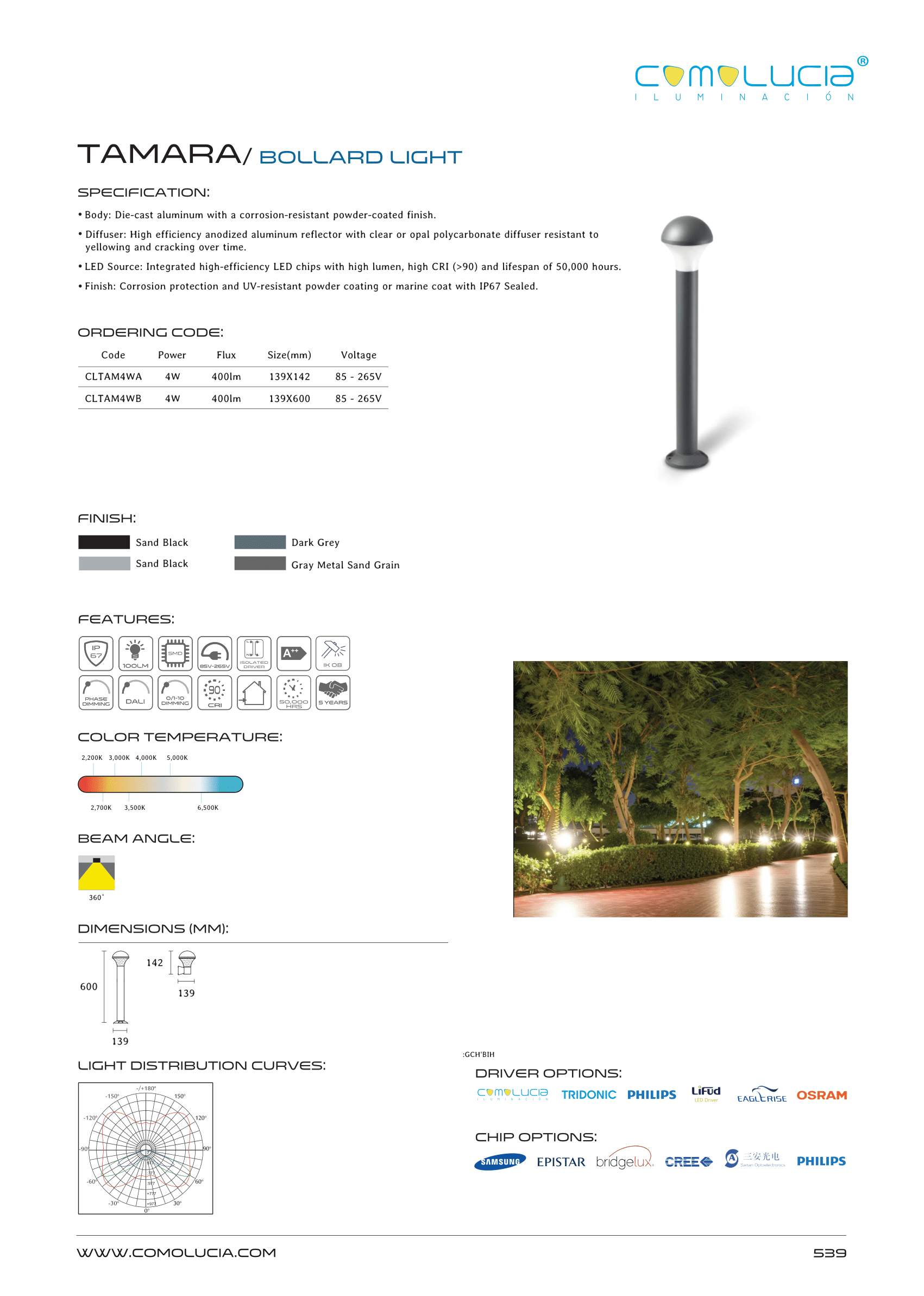 - LED Source: Integrated high-efficiency LED chips with high lumen, high CRI (>90) and lifespan of 50,000 hours.