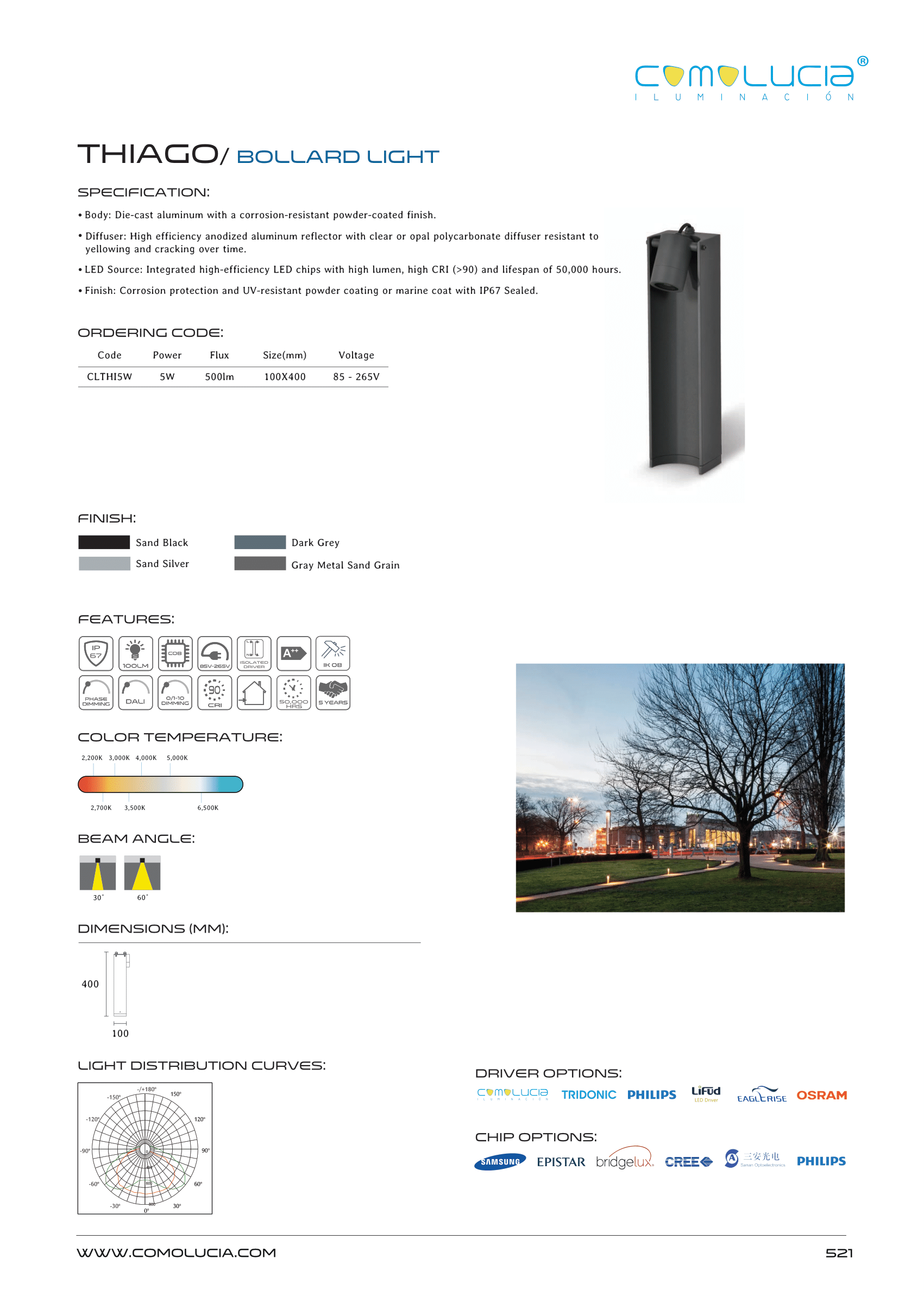 - Diffuser: High efficiency anodized aluminum reflector with clear or opal polycarbonate diffuser resistant to yellowing and cracking over time.