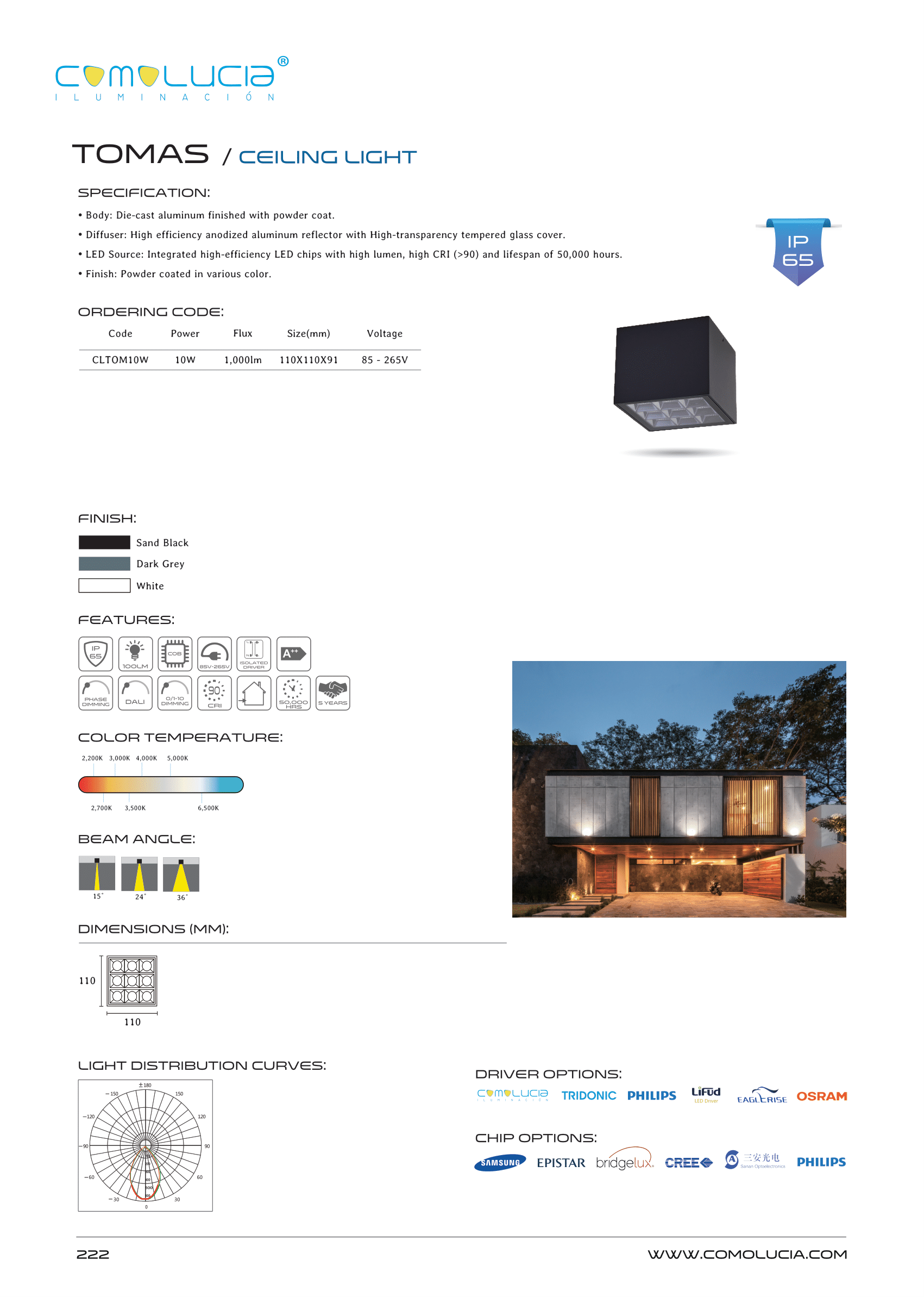 - LED Source: Integrated high-efficiency LED chips with high lumen, high CRI (>90) and lifespan of 50,000 hours.