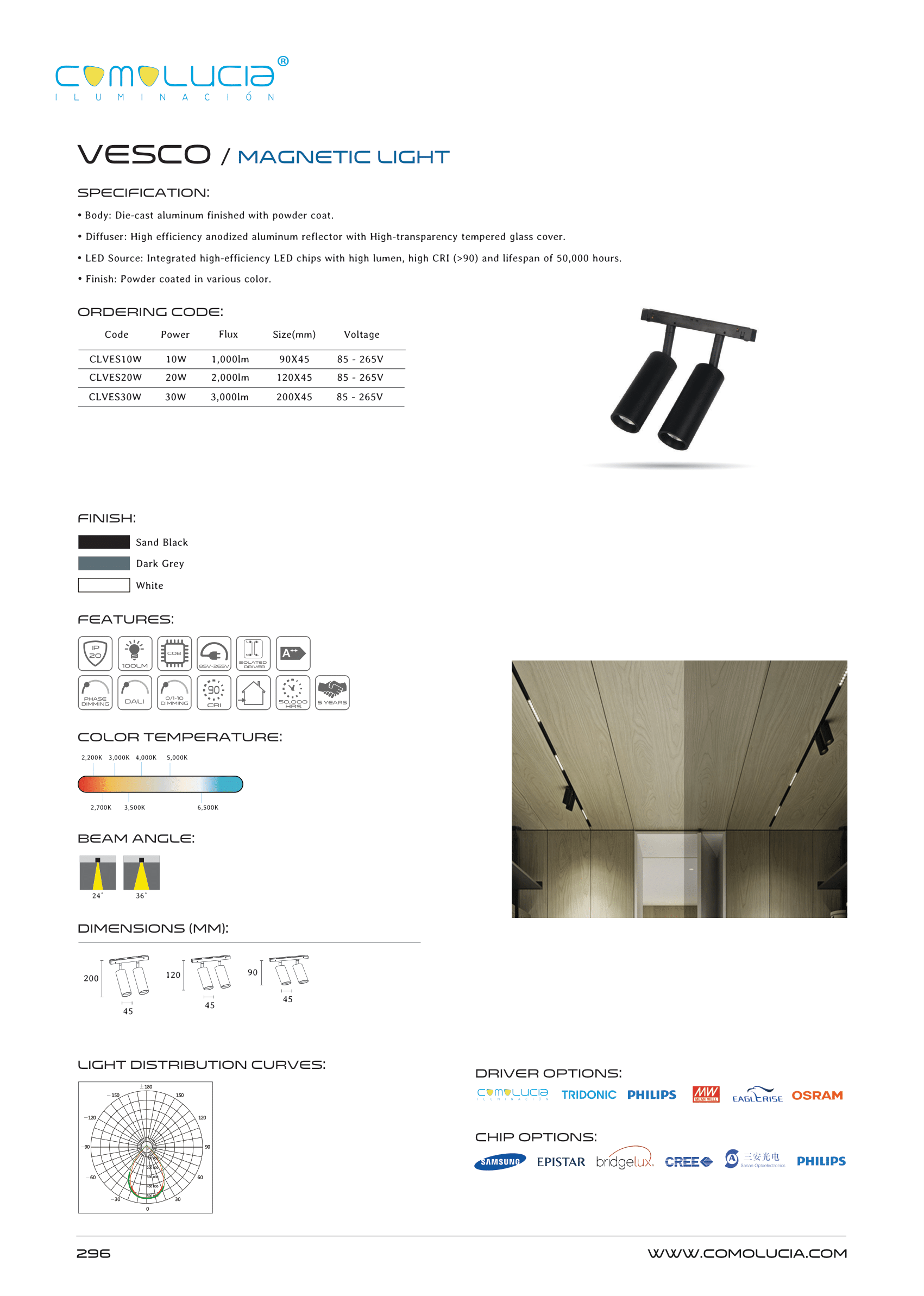 - LED Source: Integrated high-efficiency LED chips with high lumen, high CRI (>90) and lifespan of 50,000 hours.