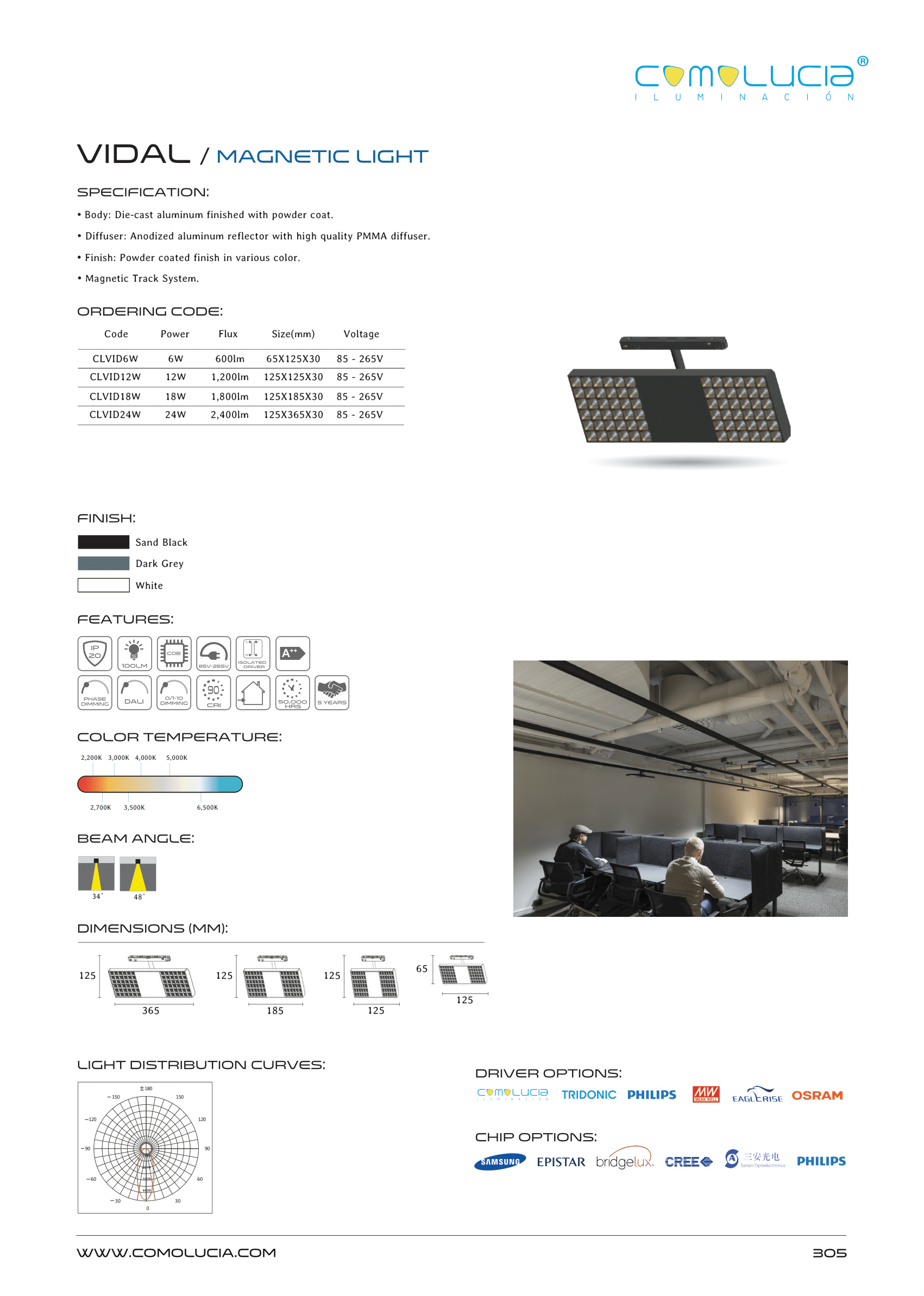 - Diffuser: High efficiency anodized aluminum reflector with High-transparency tempered glass cover.