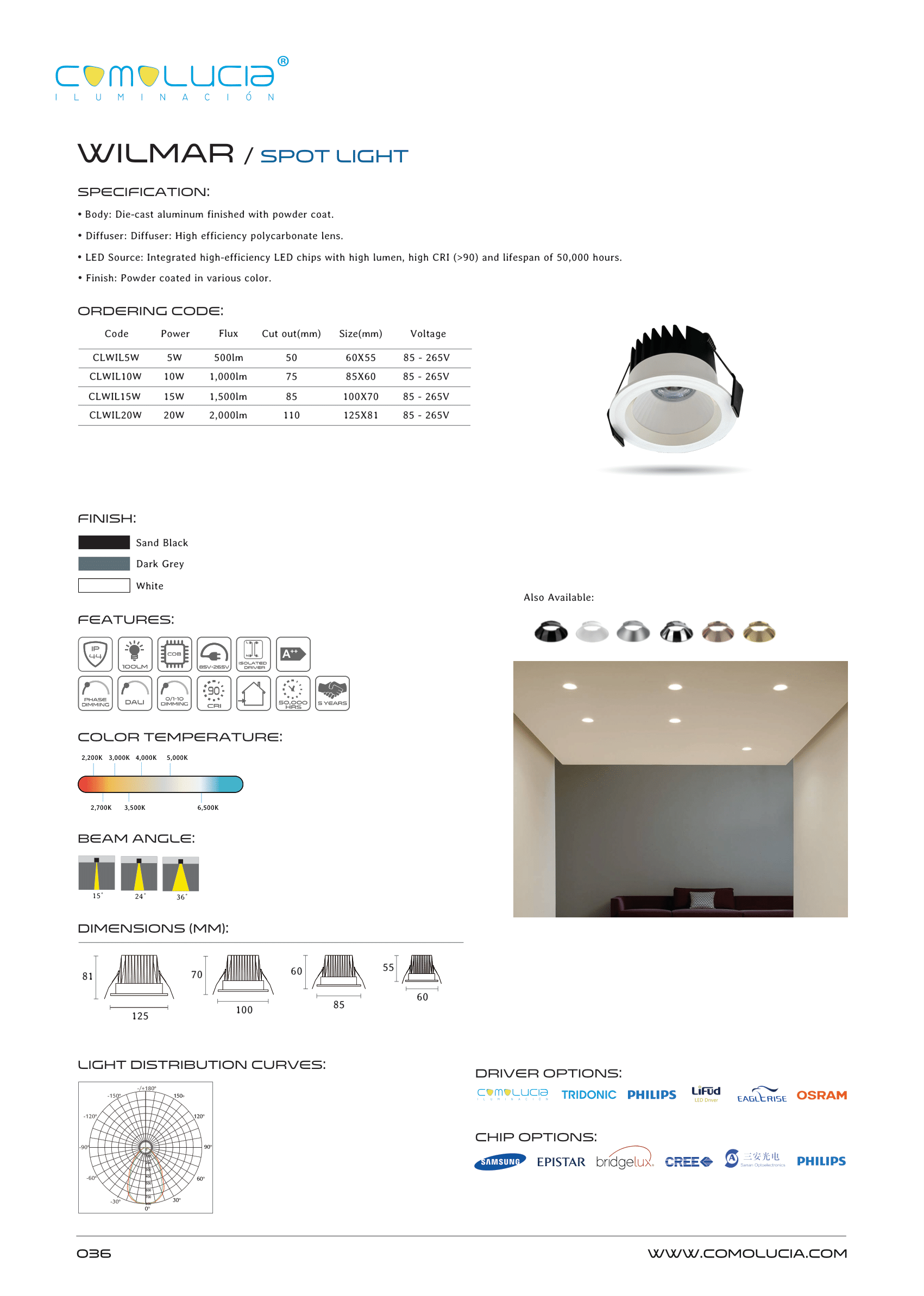 - LED Source: Integrated high-efficiency LED chips with high lumen, high CRI (>90) and lifespan of 50,000 hours. Finish: